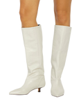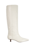 Dune London Sloan Kitten Heel Knee Length Leather Boots, Ecru