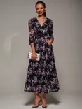 Ghost Capri Floral Puff Sleeve Midi Dress, Pink Dotty Floral