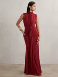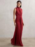 Reiss Daniella Sleeveless Ruched Maxi Dress, Dark Red