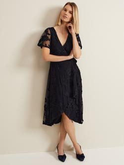 Clara Tapework Wrap Midi Dress, Navy