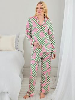 Panthera Check Button Down Long Maternity Pyjama Set, Green