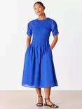 Whistles Petite Avery Smocked Midi Dress, Blue