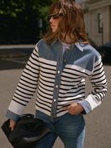 Mint Velvet Striped Denim Jacket, Blue/Multi