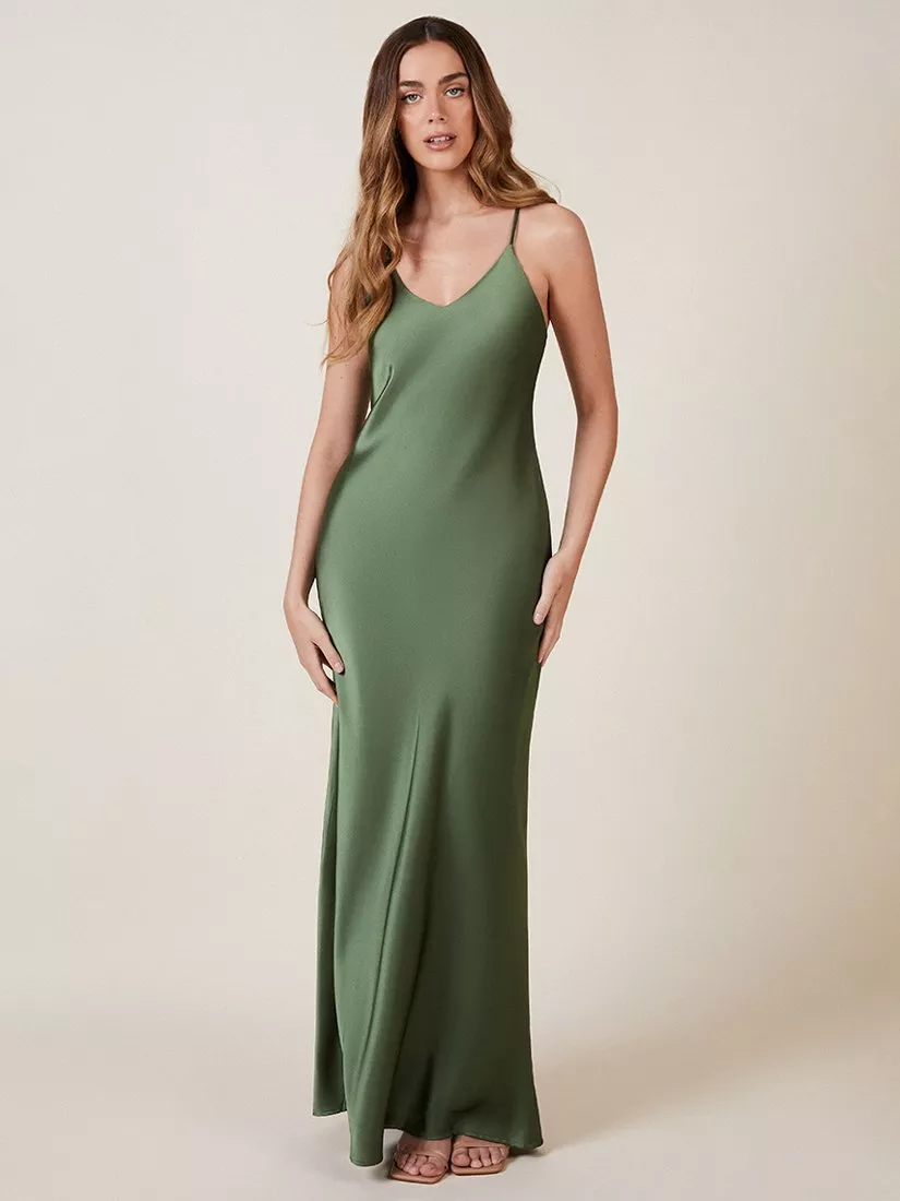 Rewritten Sienna Satin Maxi Dress, Olive Green