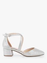 Paradox London Francis Wide Fit Glitter Block Heel Court Shoes, Silver