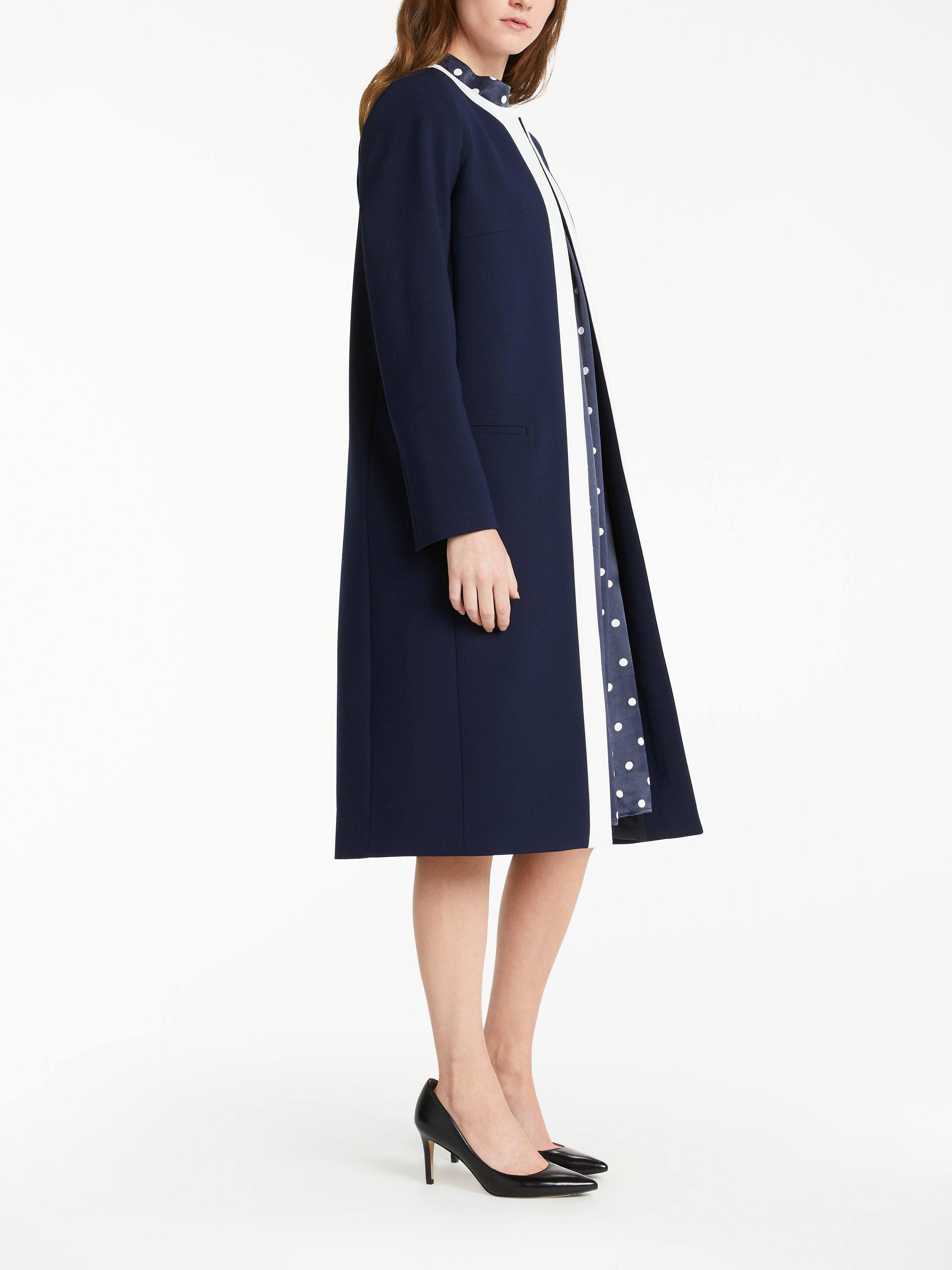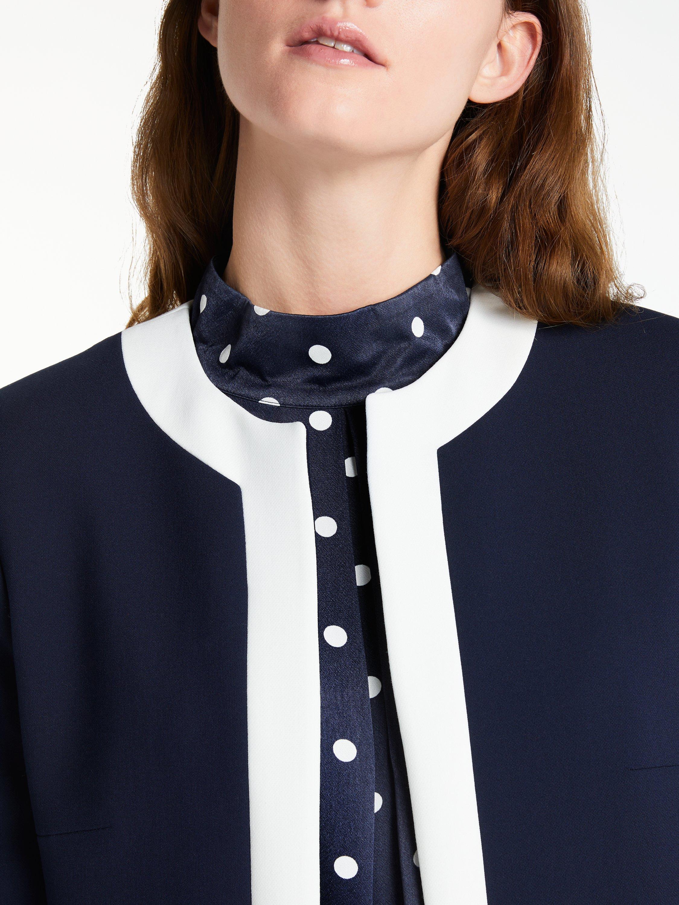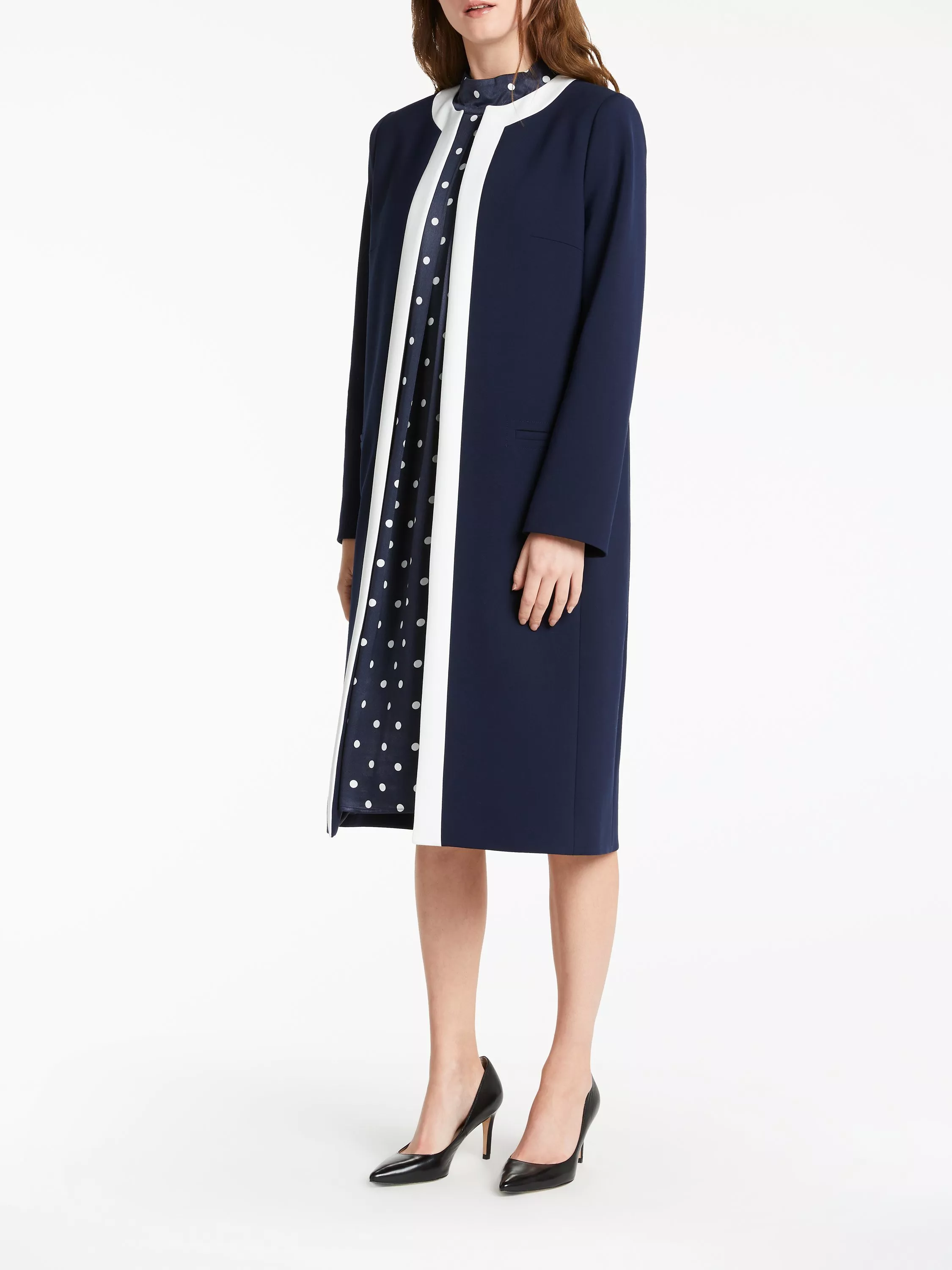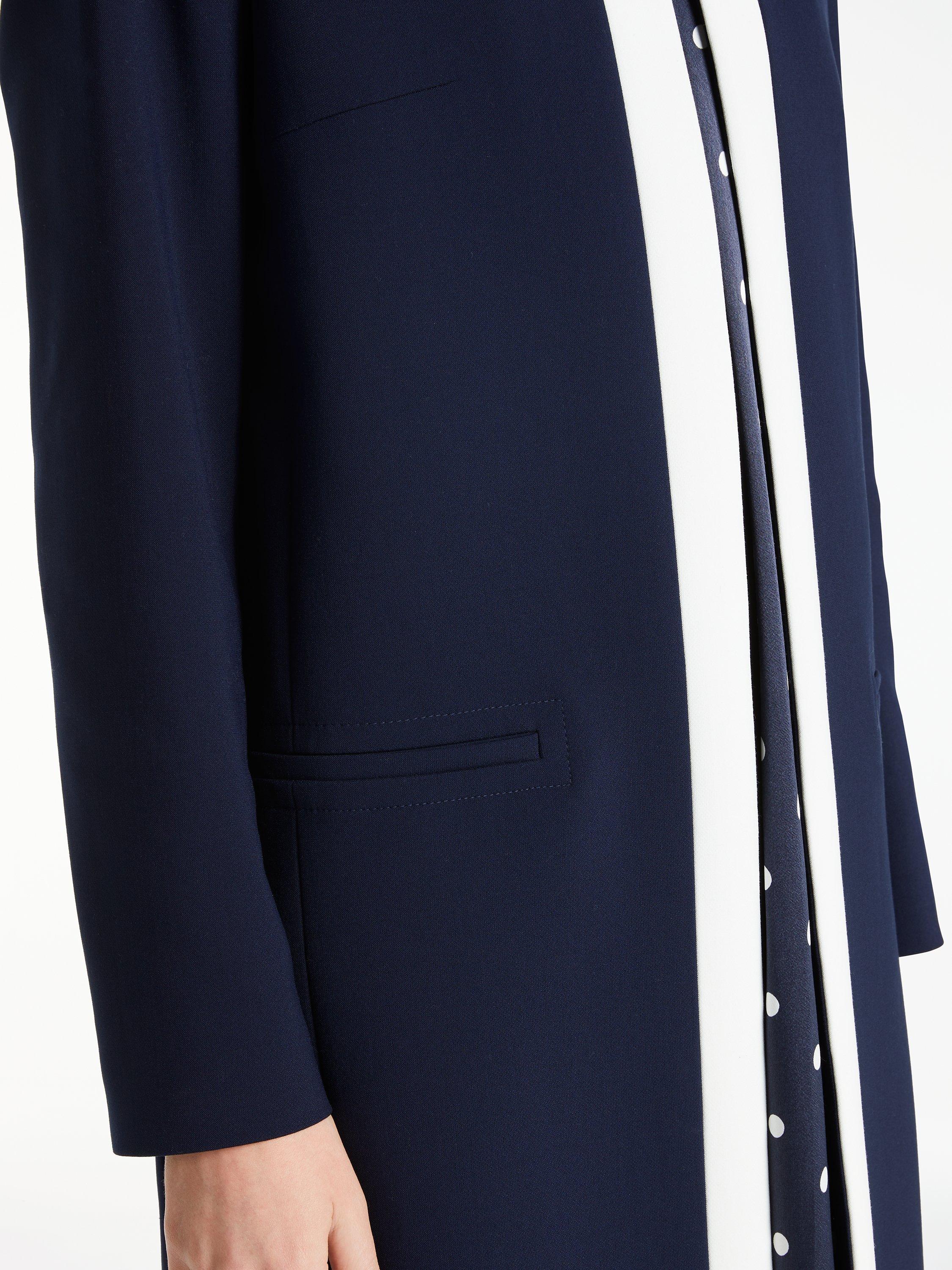 This tailored design is cut to a longline silhouette and features a round neckline, dart detailing to contour the bust and side welt pockets for a smart touch.