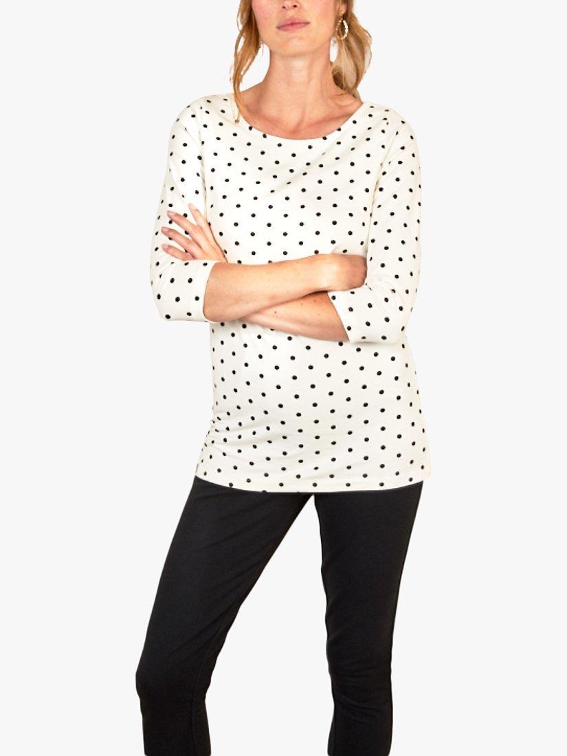 The Bshirt breastfeeding t-shirt in a captivating spot design has a 3/4 sleeve length and a flattering boat neck. This versatile nursing top, exclusively designed for breastfeeding mothers, offers a comfortable yet stylish fit. Crafted for comfort, the Bshirt allows for easy nursing versatility and layering, ensuring you feel at ease throughout the day.