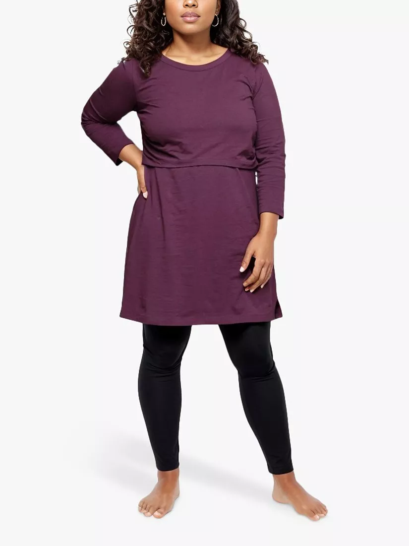 The Bshirt Nursing Dress offers a blend of style and functionality for breastfeeding mothers. This tunic-length A-line dress, made from stretchy recycled cotton, features 3/4 sleeves and comes with the same easy feeding access as Bshirt tops. It's designed for versatile layering with a choice of fit: select your regular size for a comfort fit or size down for a more shaped fit. Celebrated by mums, it's a practical addition to any nursing wardrobe.