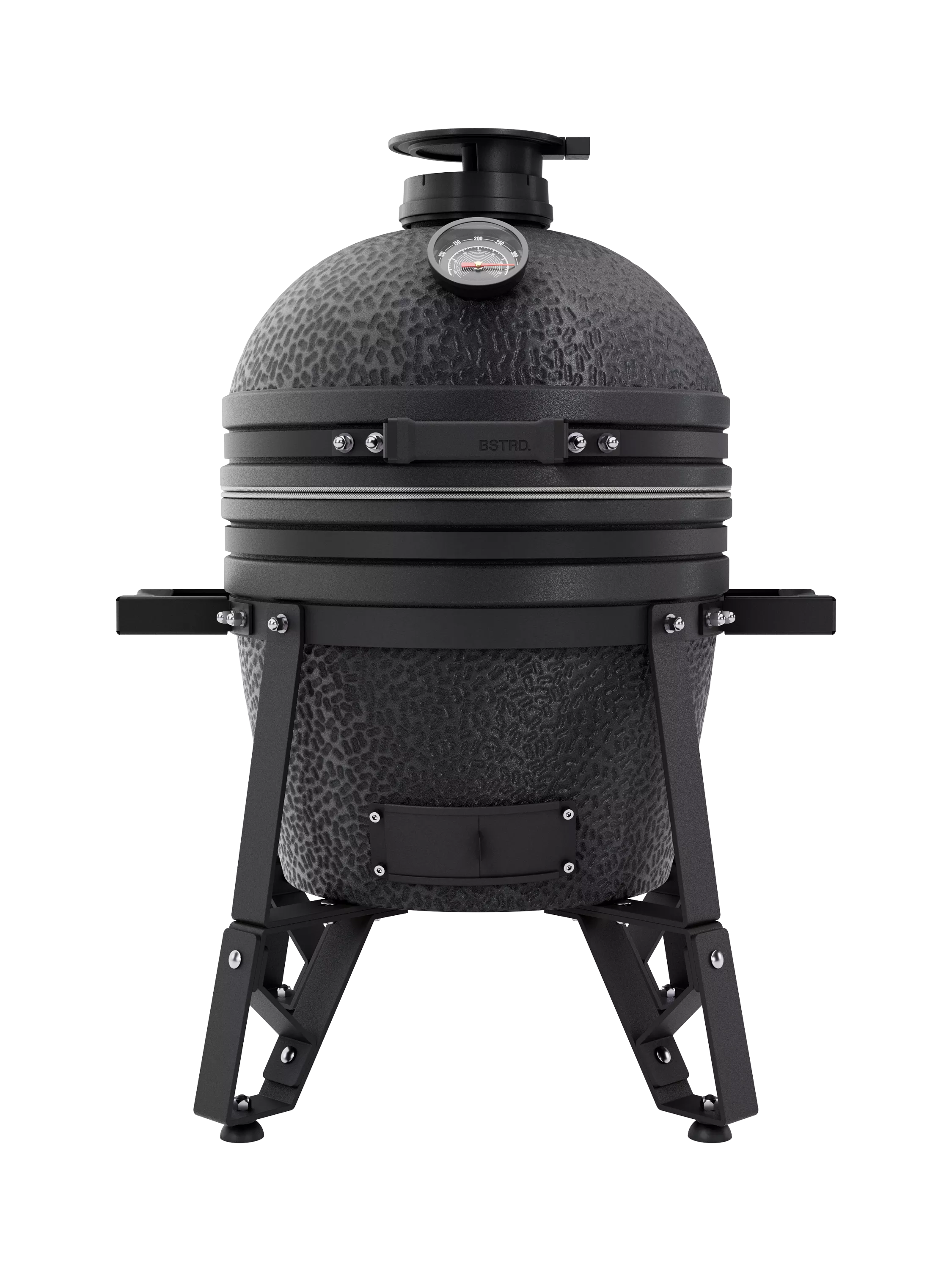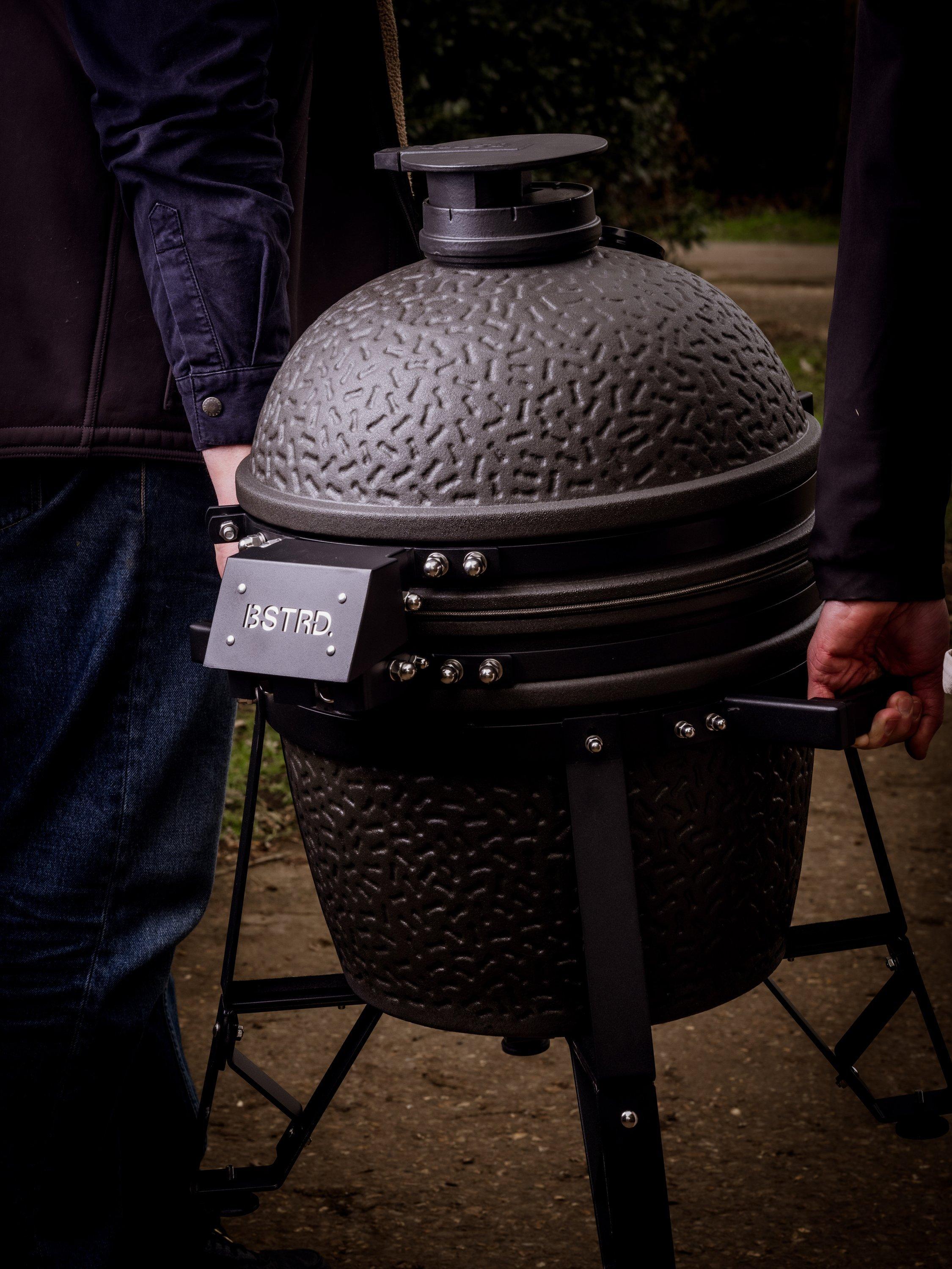 There's no compromise with this oven. Sear, roast, cook direct or indirect, and run low and slow, all powered by charcoal and controlled airflow. The BSTRD. Compact comes with everything you need. The same premium ceramics as the brand's bigger ovens, deflector plates and high-quality stainless steel grates.