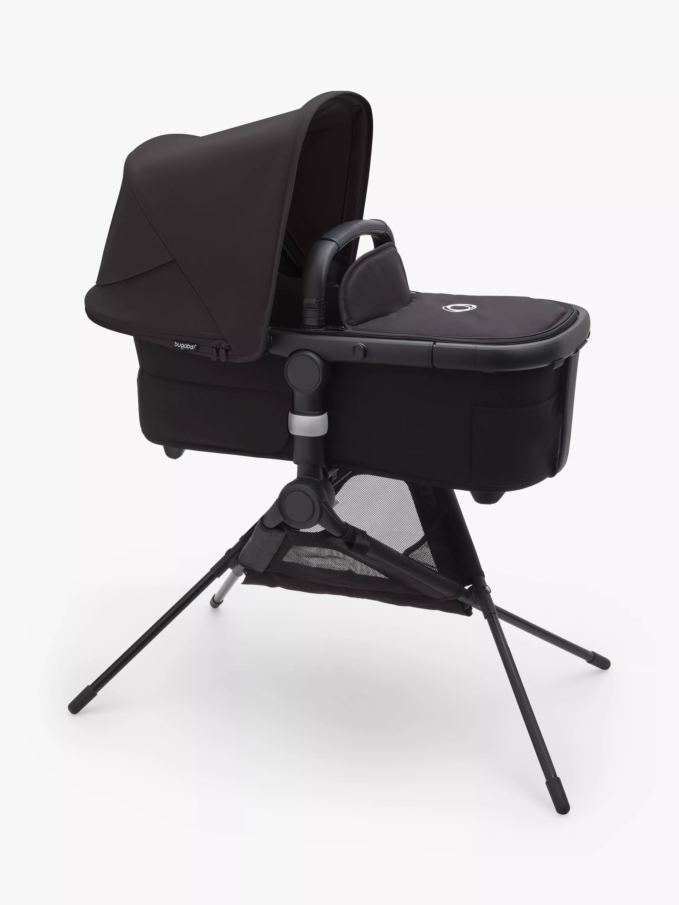 Transform your Bugaboo bassinet (sold separately) into a sleeping solution with the Bugaboo bassinet stand. It's ready to use in just four clicks, letting your baby sleep in a comfy bassinet they already love. The sturdy stand is also foldable, compact and easy to store. It includes a shoulder bag for easy transportation.