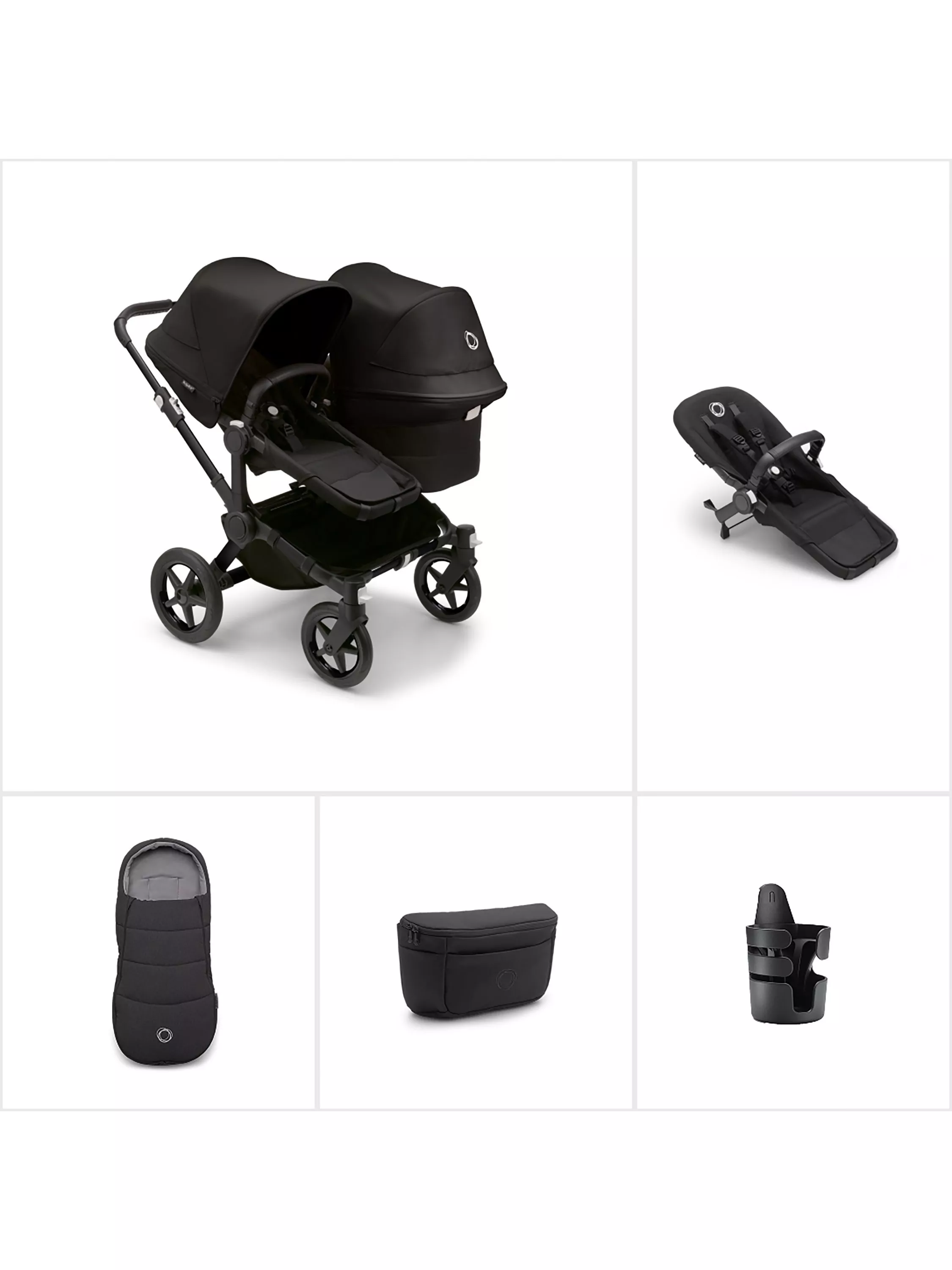 BugabooDonkey 5 Duo Pushchair, Carrycot & Accessories Essential Bundle, Midnight Black