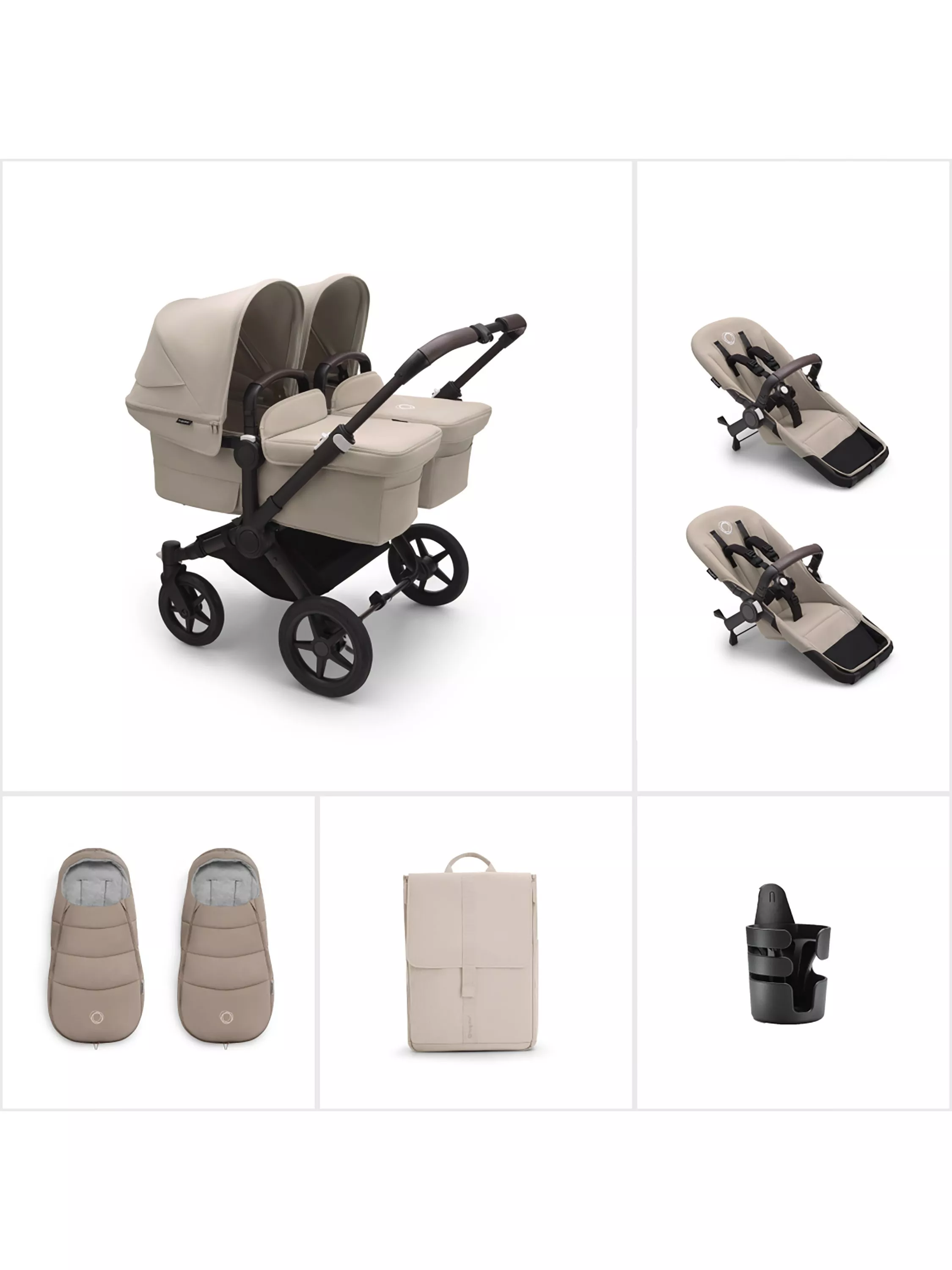 BugabooDonkey 5 Twin Pushchair, Carrycot & Accessories Essential Bundle, Desert Taupe