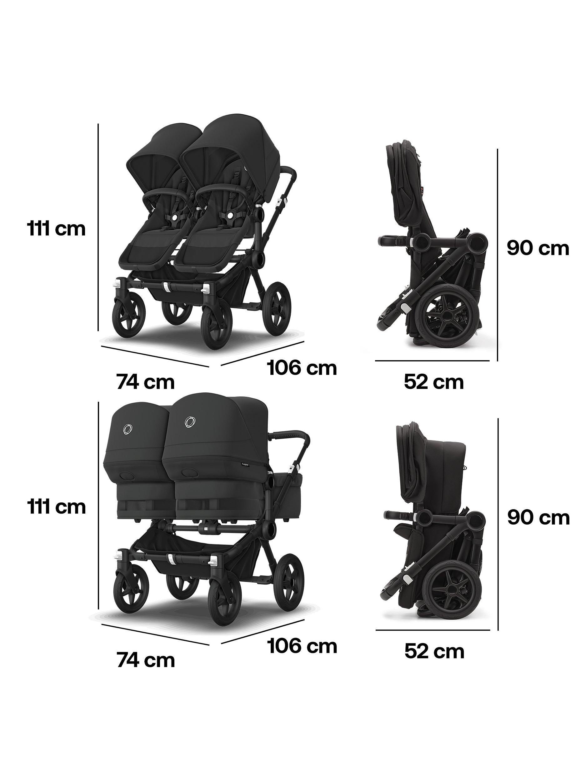 - Side-by-side double pushchair design that still fits through most standard doorways
