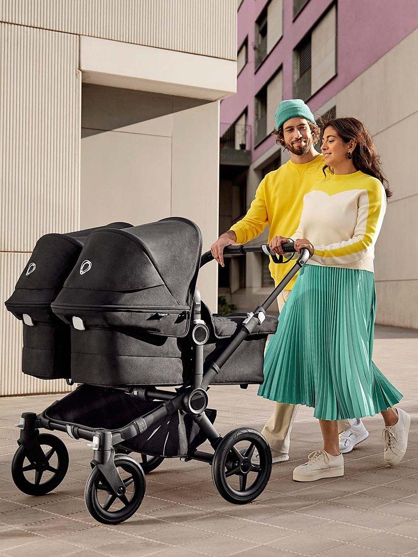 Keep your twins together from day one with the new and improved side-by-side double pushchair for twins. Convert the pushchair from single to twin in just three clicks and let your little co-pilots share new experiences from their very first stroll. It's smaller than you think, and ready to go with just a one-hand push.