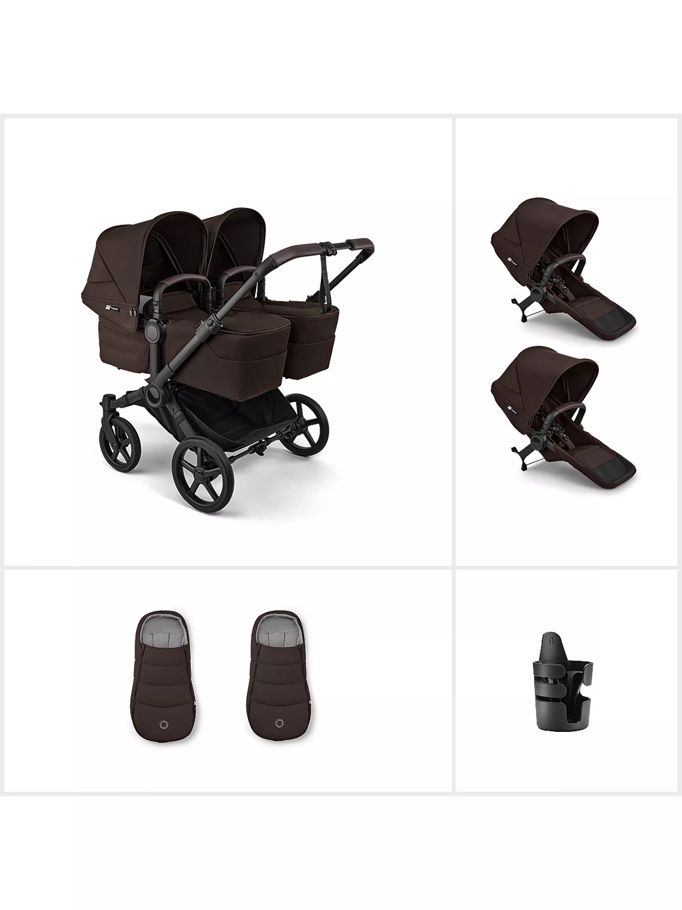BugabooDonkey 6 Twin Stroller Essential Bundle, Cocoa Brown