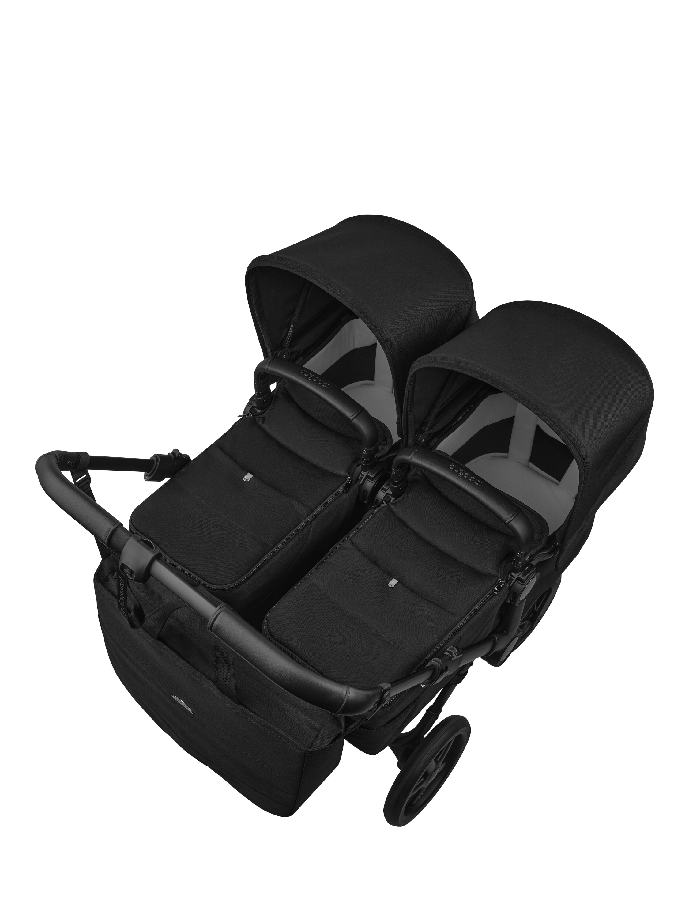 The spacious underseat basket is 50% larger than previous models, holding up to 15kg (33lbs) or 70L. The redesigned side bag doubles as a changing bag, keeping must-haves within easy reach. In double mode, it attaches securely to the handlebars and holds up to 4kg (8.8lbs).