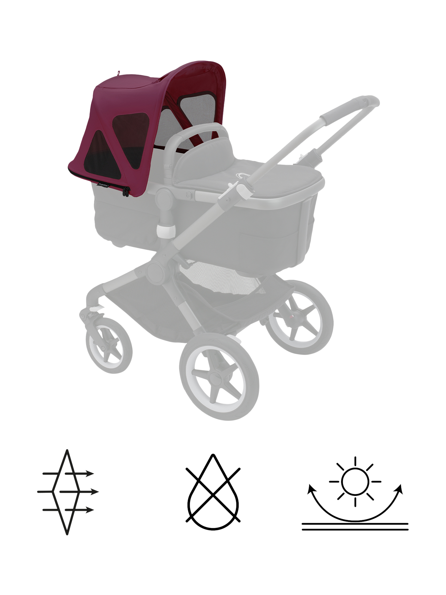 Keep your child protected from weather elements with the Bugaboo Dragonfly breezy sun canopy. Featuring UPF 50+ sun protection and breezy mesh panels, it’s the best stroller accessory to shade against sun rays while allowing the breeze to keep your baby cool.