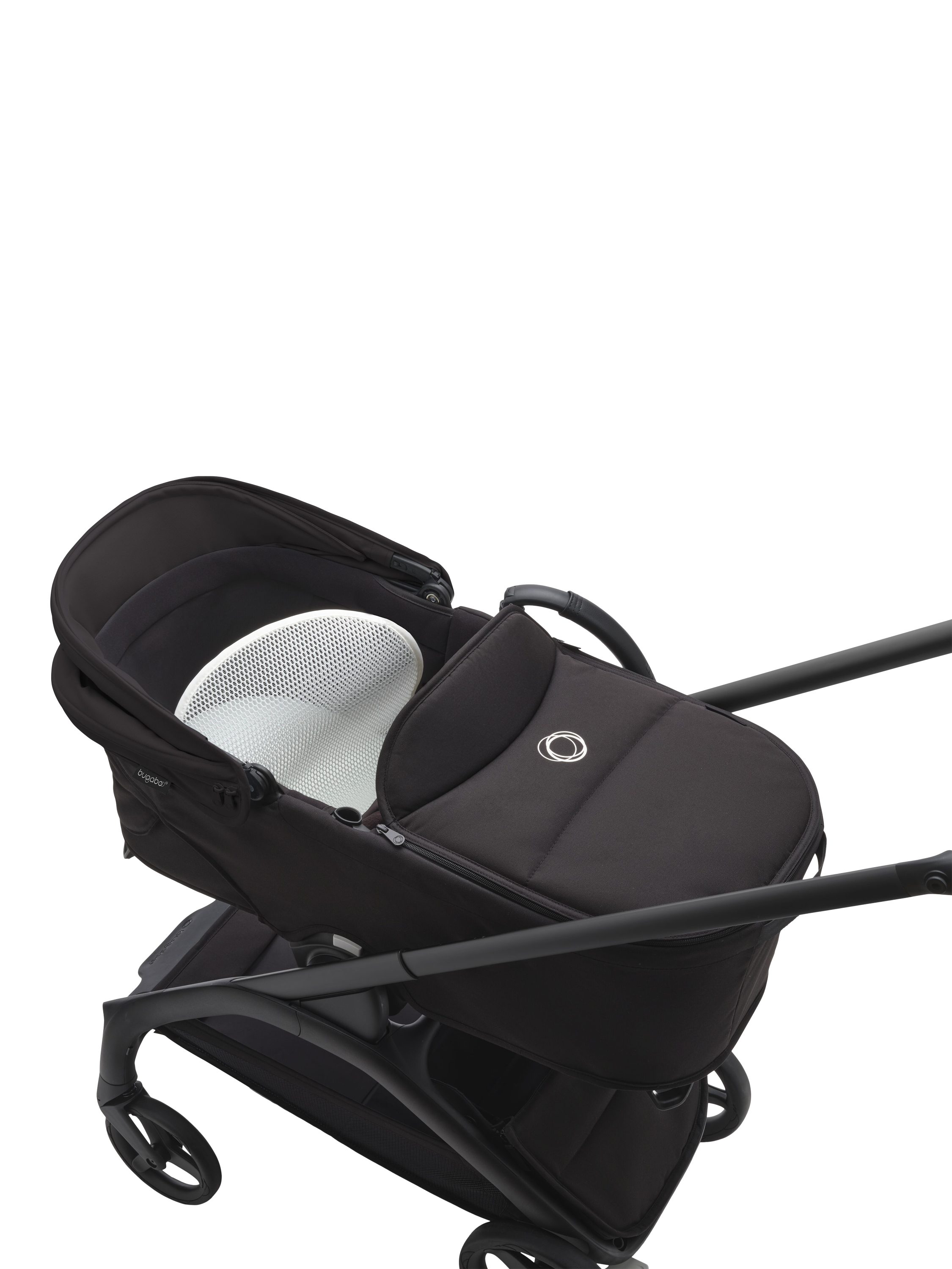 The Bugaboo Dragonfly Carrycot is the perfect complement to the Bugaboo Dragonfly stroller (sold separately). This spacious and lightweight carrycot offers optimal comfort for your newborn. Thanks to the soft, breathable mattress and high-quality, water-repellent materials, your child will always be safe and dry, whatever the weather. The clever design allows you to easily fold the stroller without removing the carrycot, making it ideal for on-the-go use. For added comfort and ventilation, the carrycot features a mesh panel at the foot end. This ensures optimal airflow, especially on hot days. The carrycot easily attaches to the stroller frame with the included carrycot adapters, so you're ready for any adventure with your little one in no time.