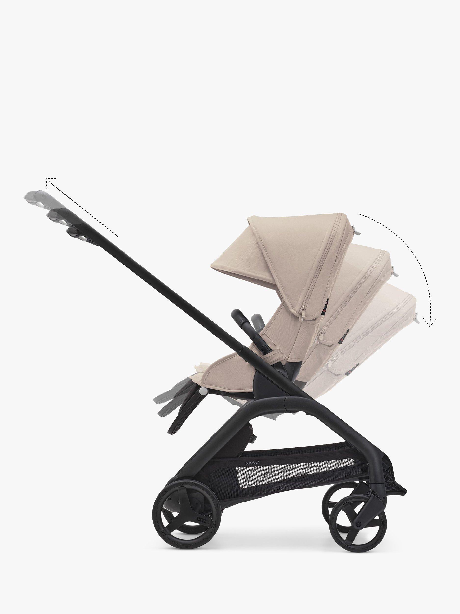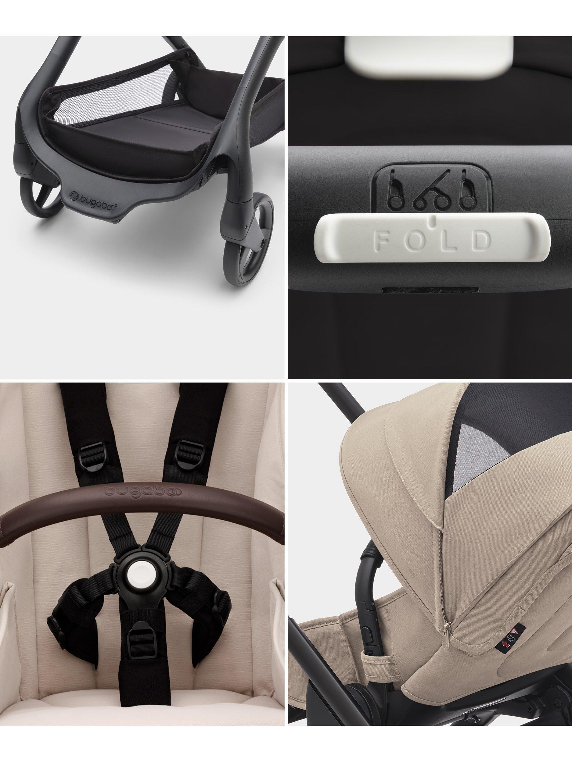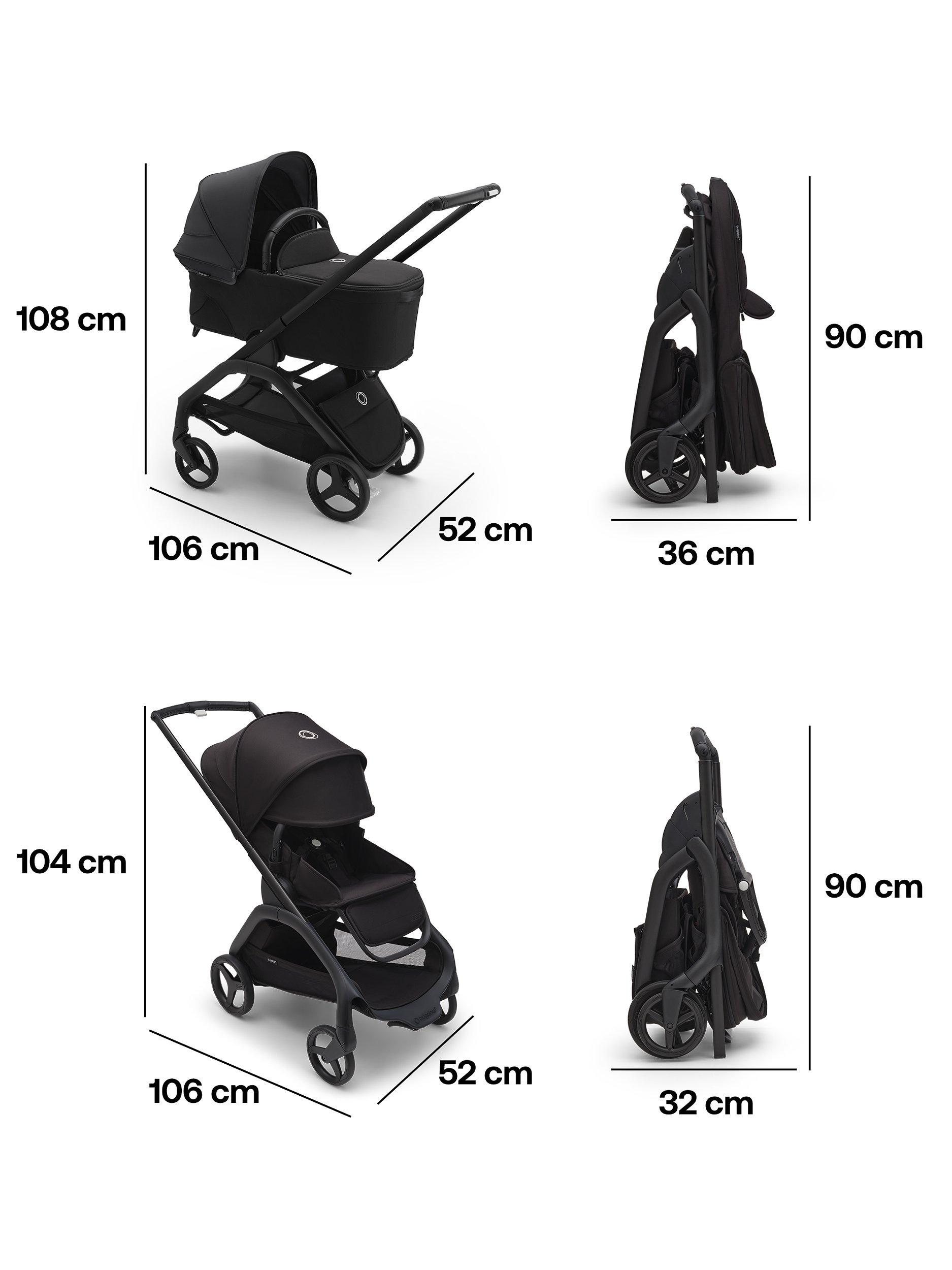 Easy compact fold - The Bugaboo Dragonfly can fold without removing the seat or bassinet, in any position. Easily tuck the self-standing fold design into a closet, car trunk or narrow hallway, so it’s out of the way but always within reach.