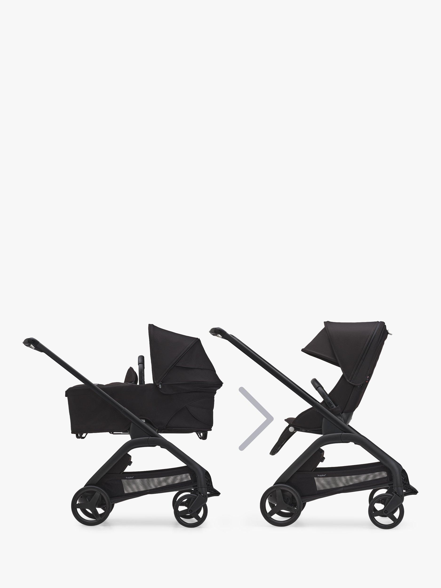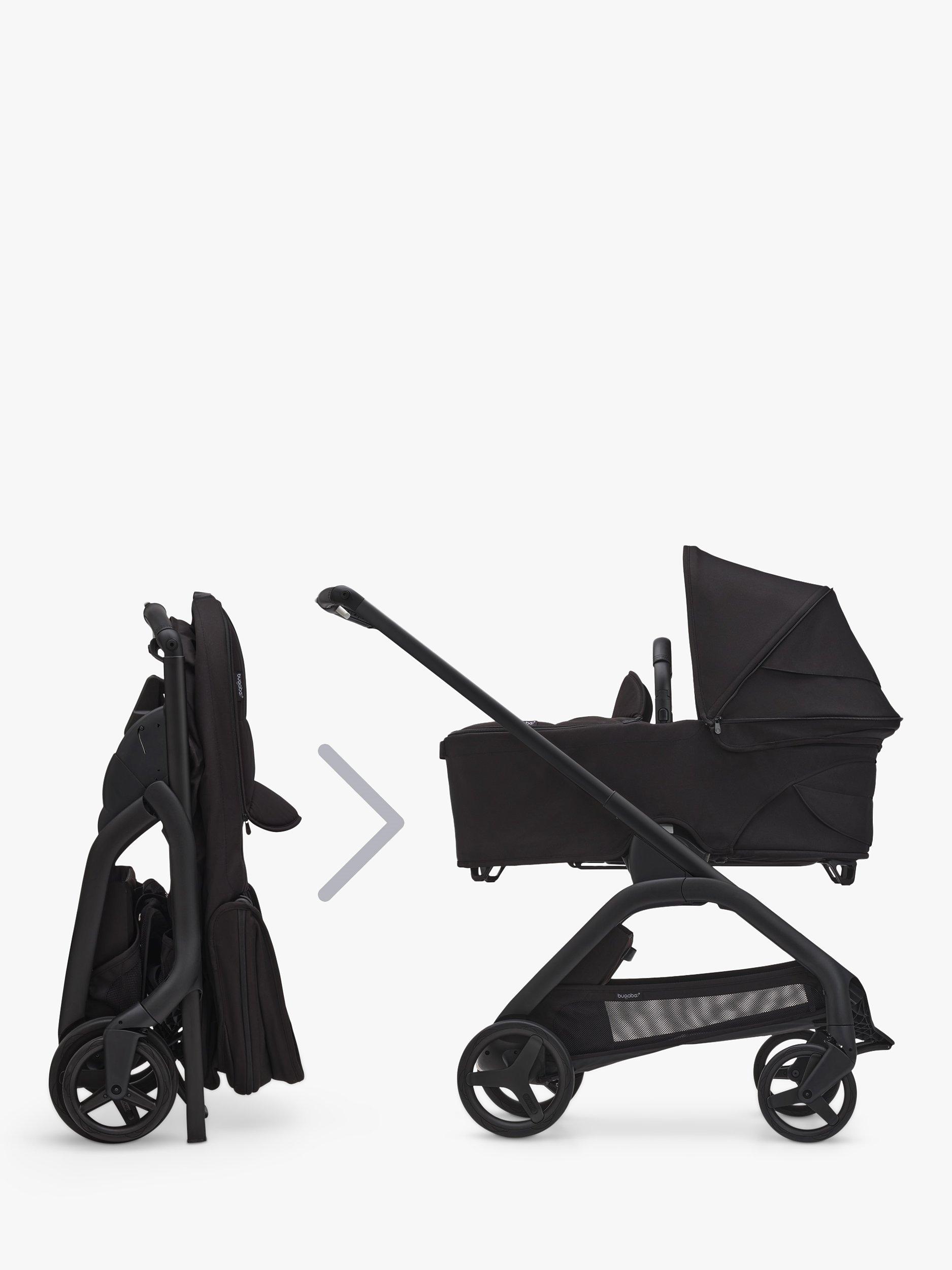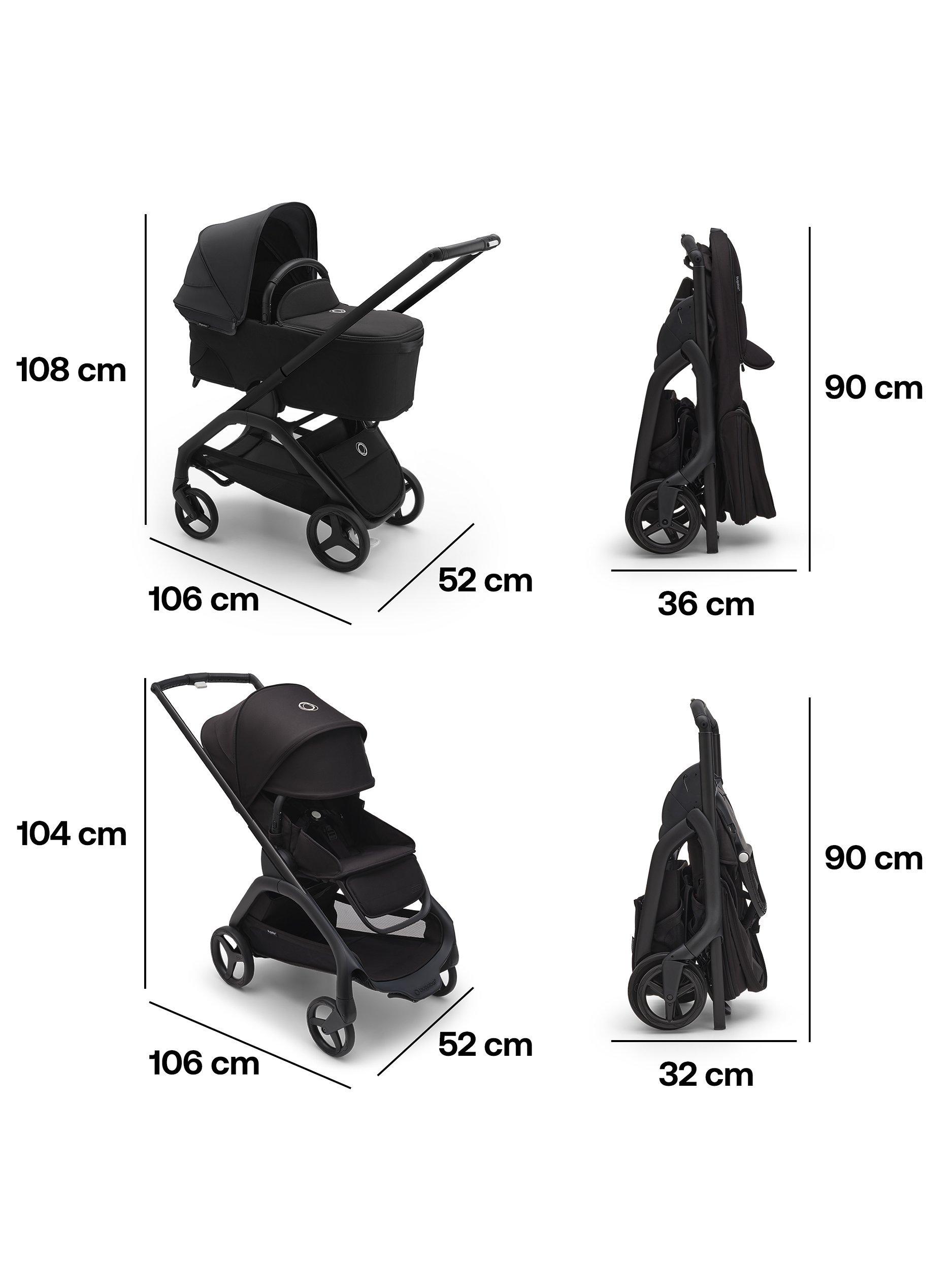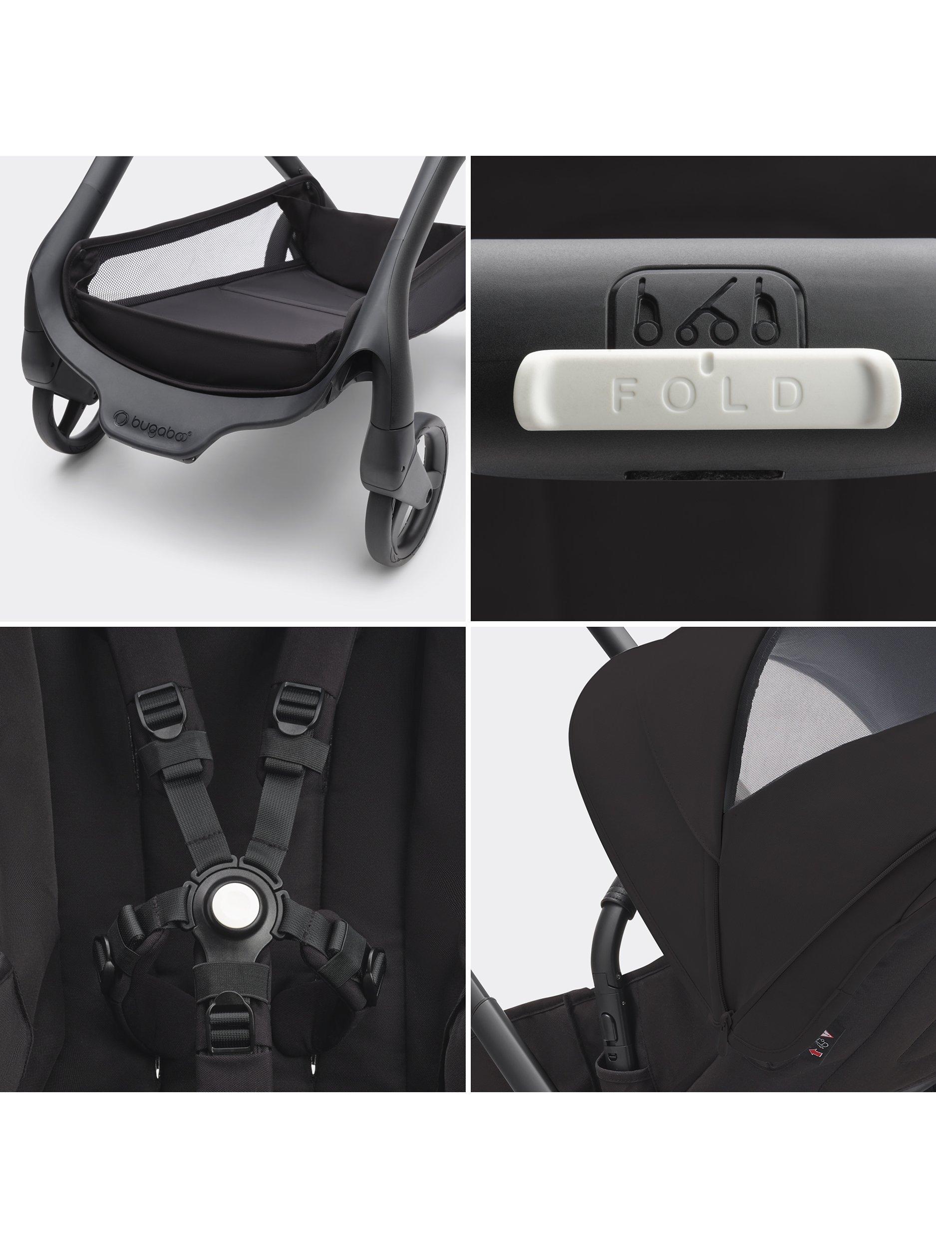 Easy compact fold - The Bugaboo Dragonfly can fold without removing the seat or bassinet, in any position. Easily tuck the self-standing fold design into a closet, car trunk or narrow hallway, so it’s out of the way but always within reach.