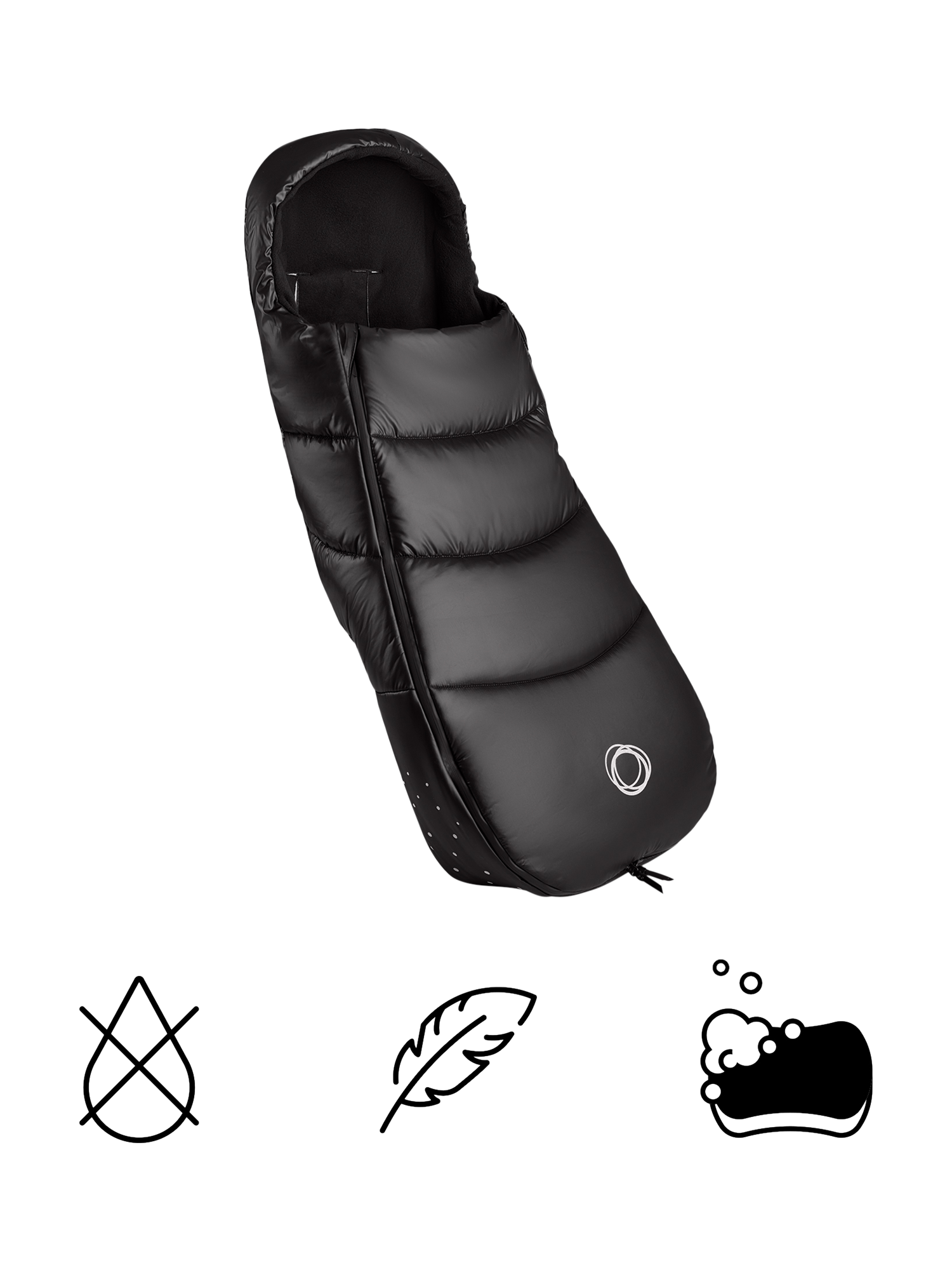 The Noir Limited Edition Bugaboo footmuff is the comfortable cocoon for your baby that keeps them dry and comfy all year round. Offered in elevated shades with premium-recycled fabrics to perfectly match your Noir Limited Edition Bugaboo Fox 5 colourway.