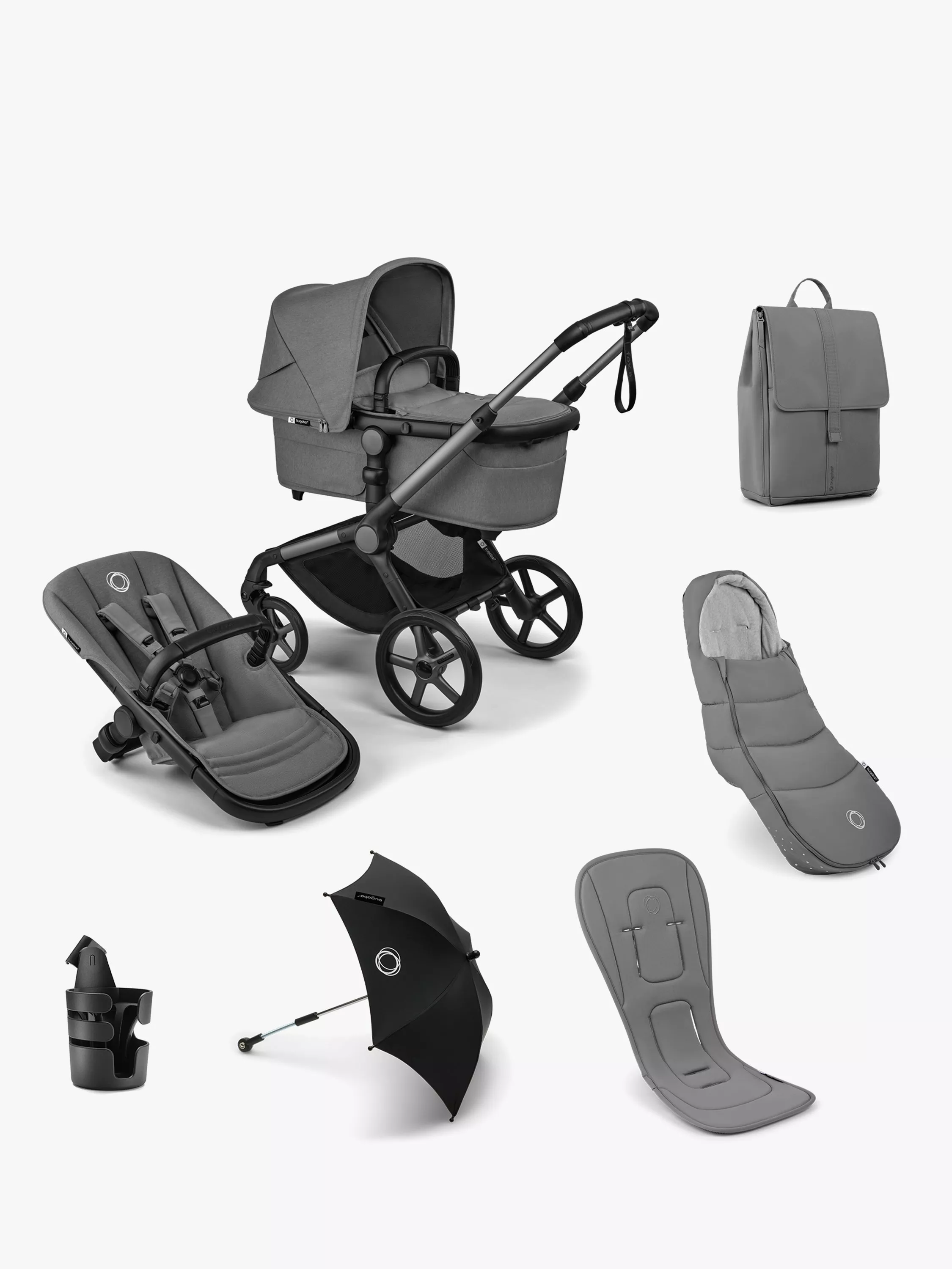 BugabooFox 5 Renew Pushchair & Accessories Essential Bundle, Moon Grey