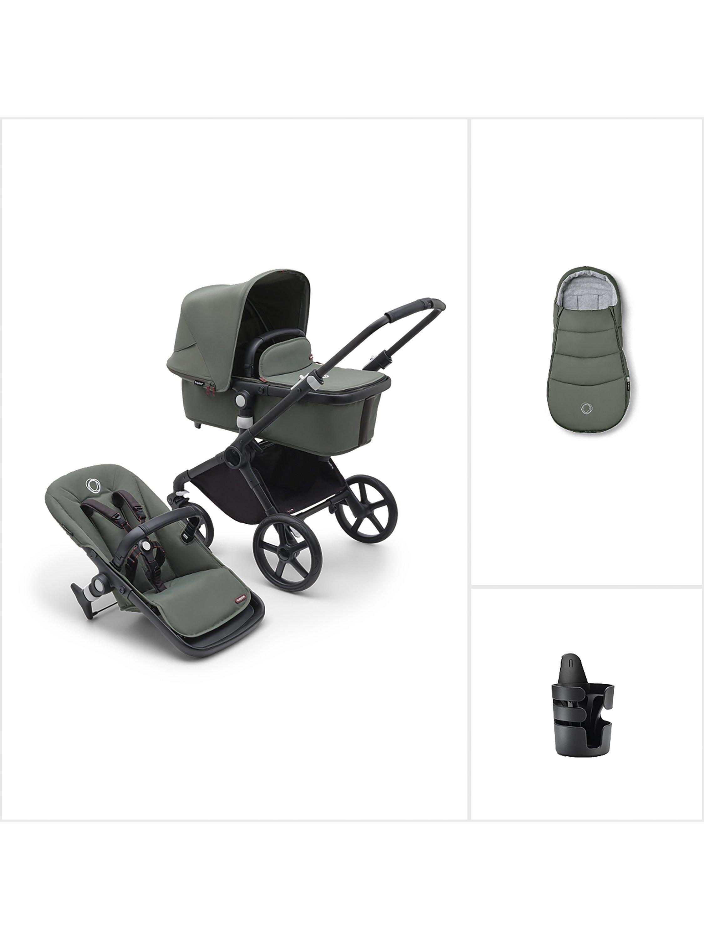 From Bugaboo, the Fox Cub stroller, footmuff and cup holder is an essential bundle to get you started with strolls with baby.