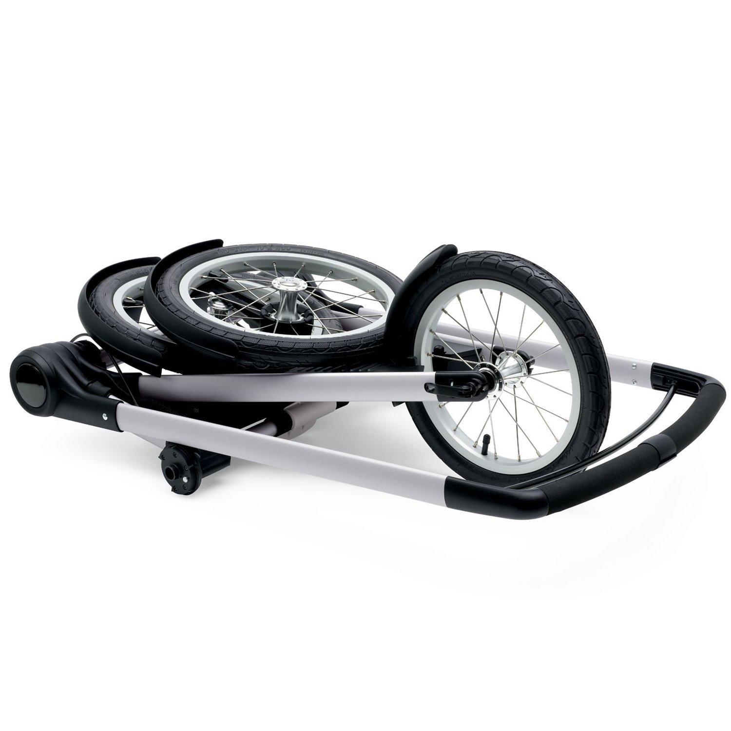 Just a squeeze of either hand, anywhere on the handlebar, engages the brakes to control your speed, or stop, without effort. The Bugaboo Runner quickly unfolds and folds in to its compact form, perfect for storing at home or taking along in your car, to explore new paths and trails.