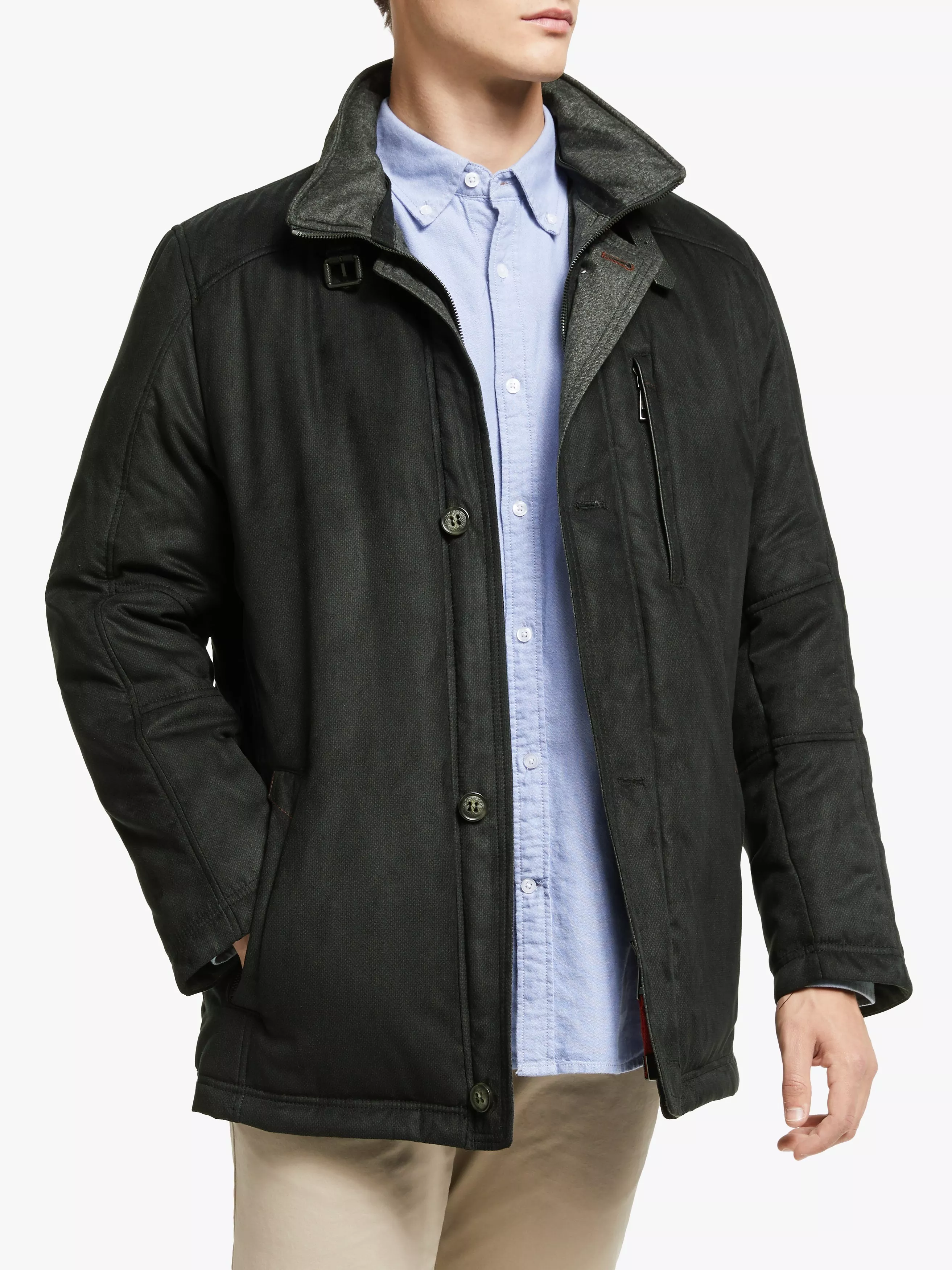 Constructed with a zip front concealed by a button placket, the buckle-fastening funnel neckline is ideal for blocking out the chill. Complete with two slanted front pockets and a zip-up vertical chest pocket, it opens up to reveal two interior zip-up security pockets.