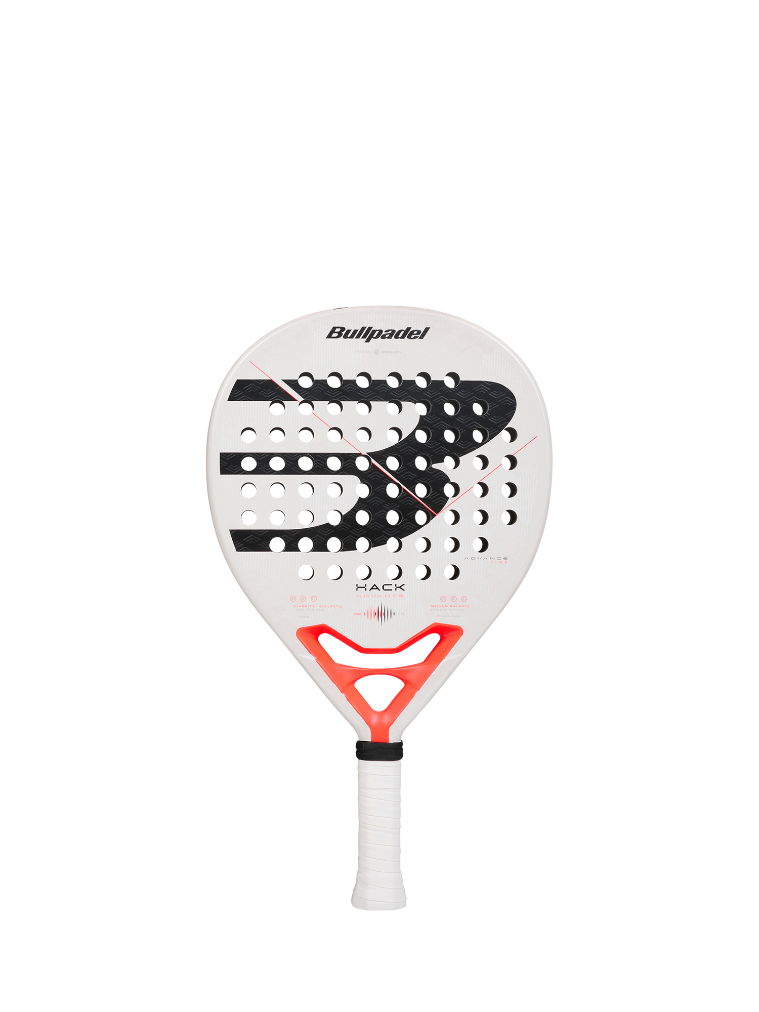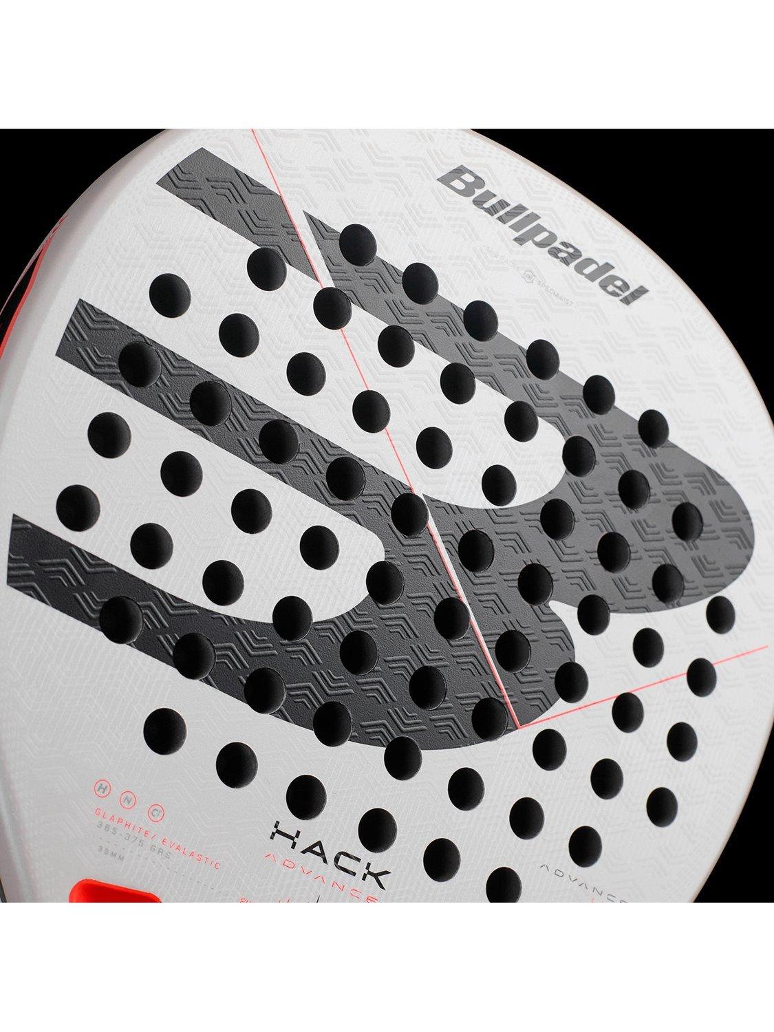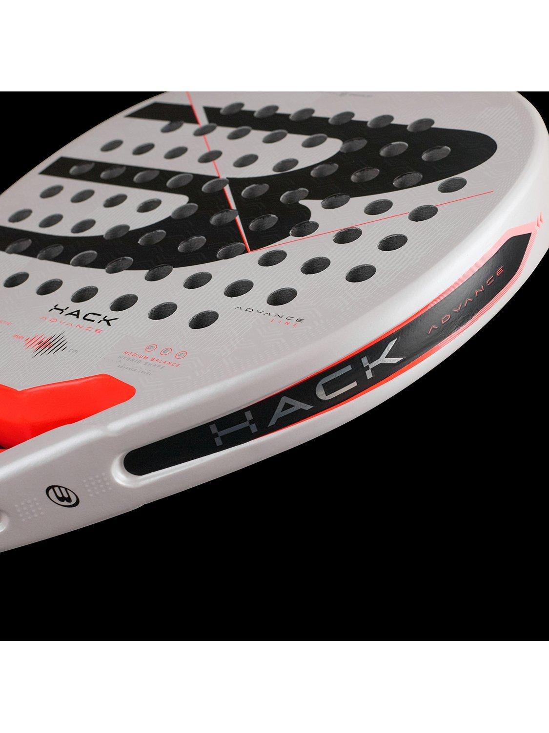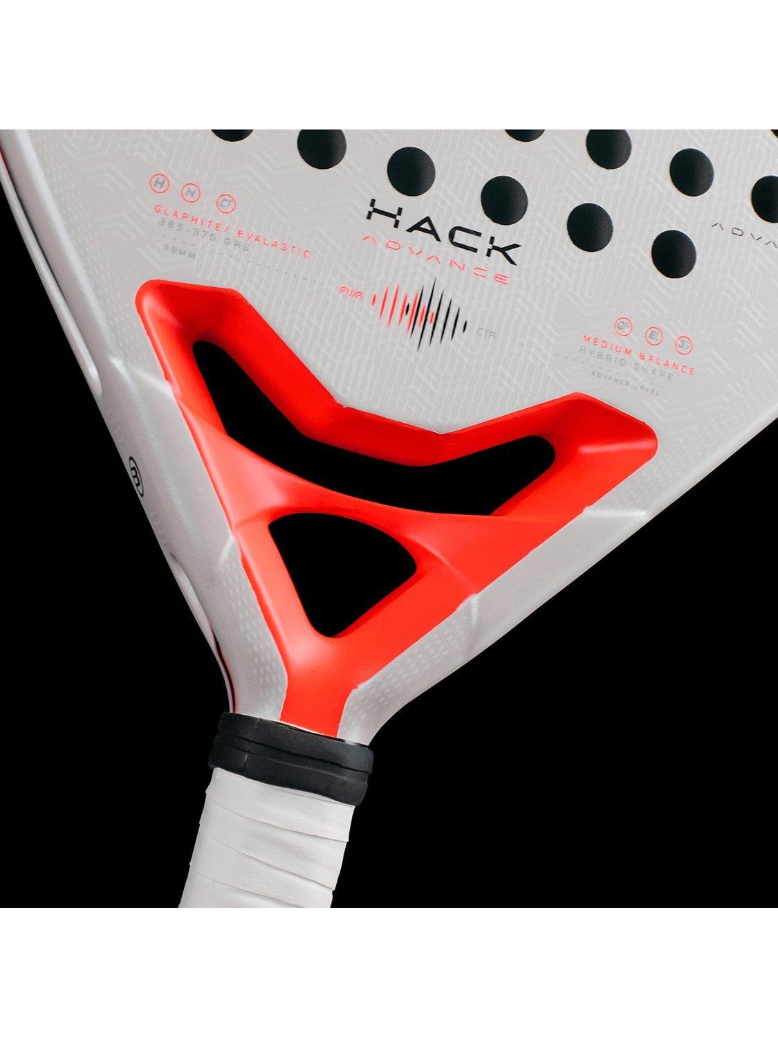 The Hack 02 Advance is a round-shaped racket offering maximum control and high performance. It is designed for intensive or advanced players. Its outer core is composed of Glaphite, a blend of carbon and glass fiber, and its inner core is composed of Evalastic fiber, with elasticity and density characteristics that provide great comfort and feel when hitting. The frame is made of 100% carbon fiber CarbonTube. It features the new Hack Core and Nerve channels on the side of the racket frame.