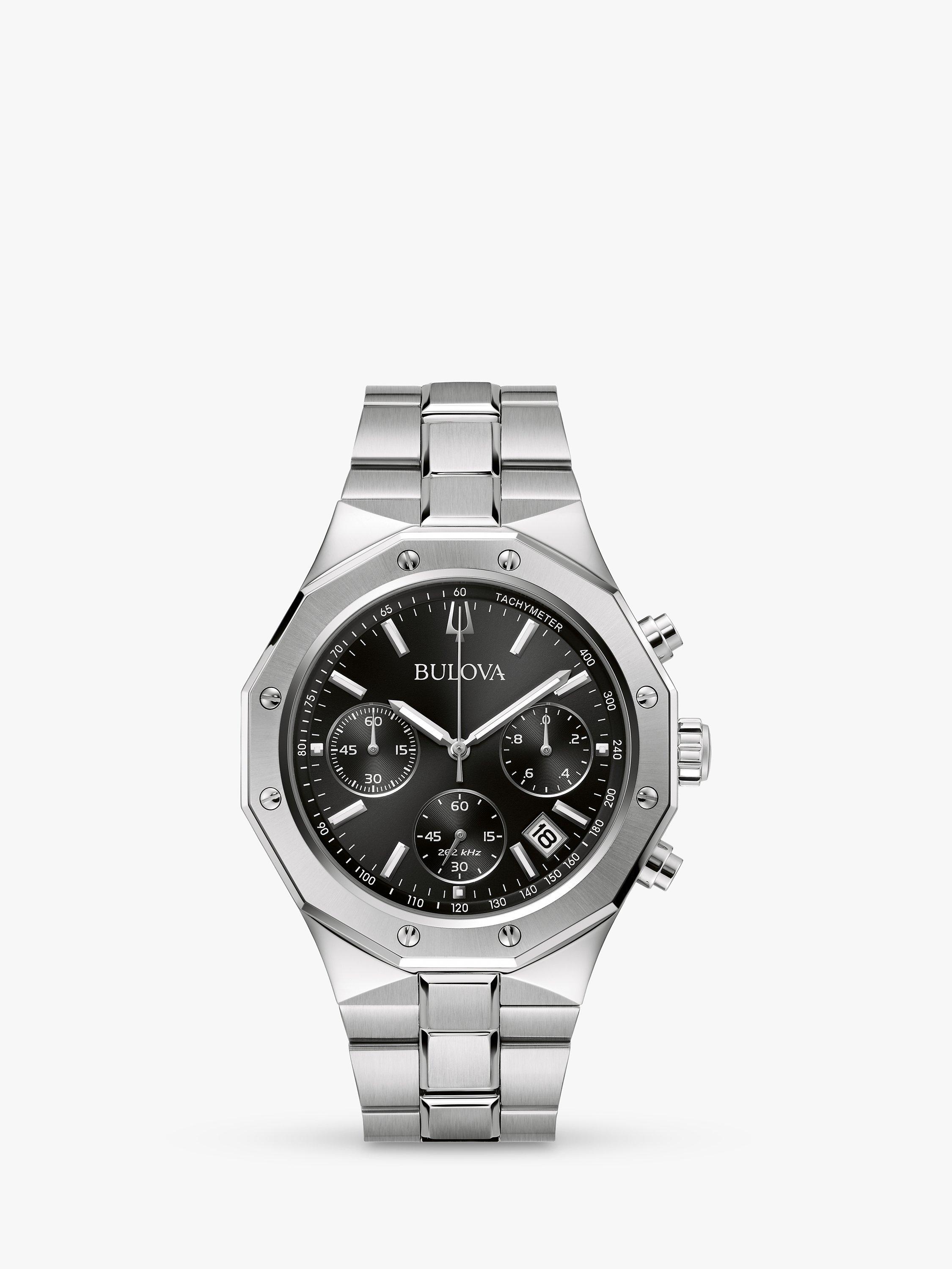 BulovaMen's Chronograph Geometric Bezel Bracelet Strap Watch, Silver/Black
