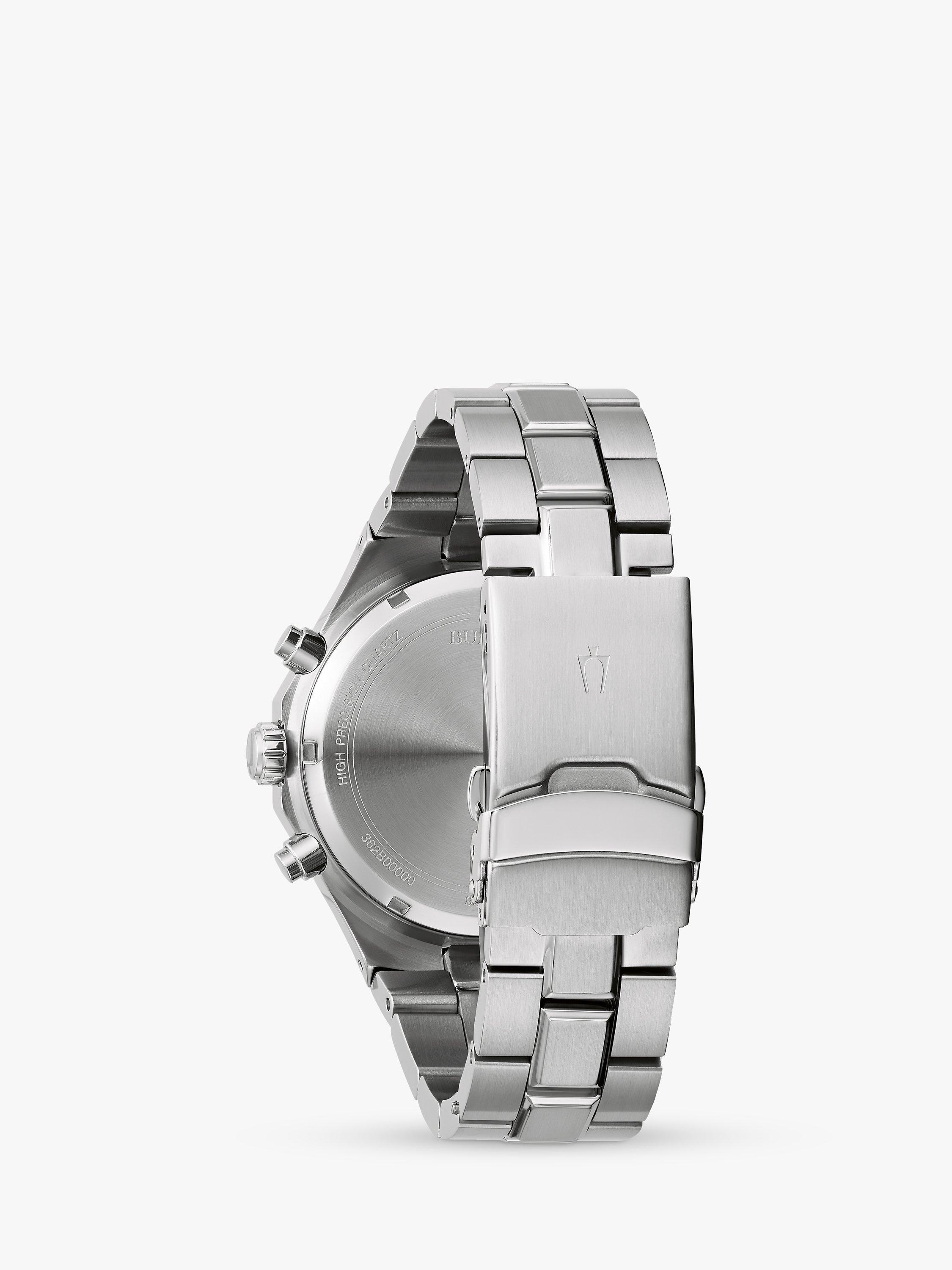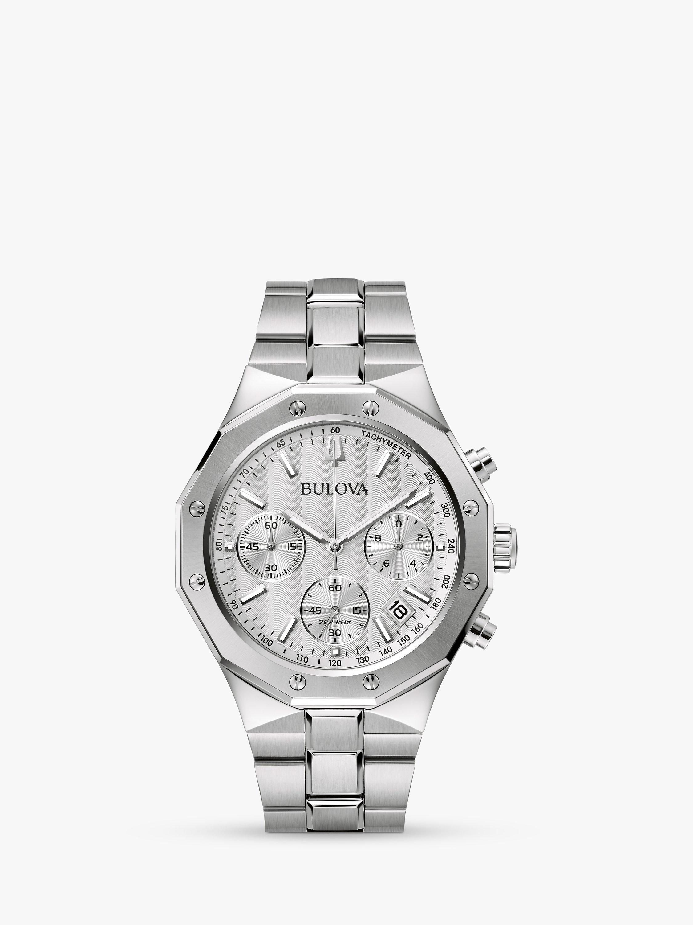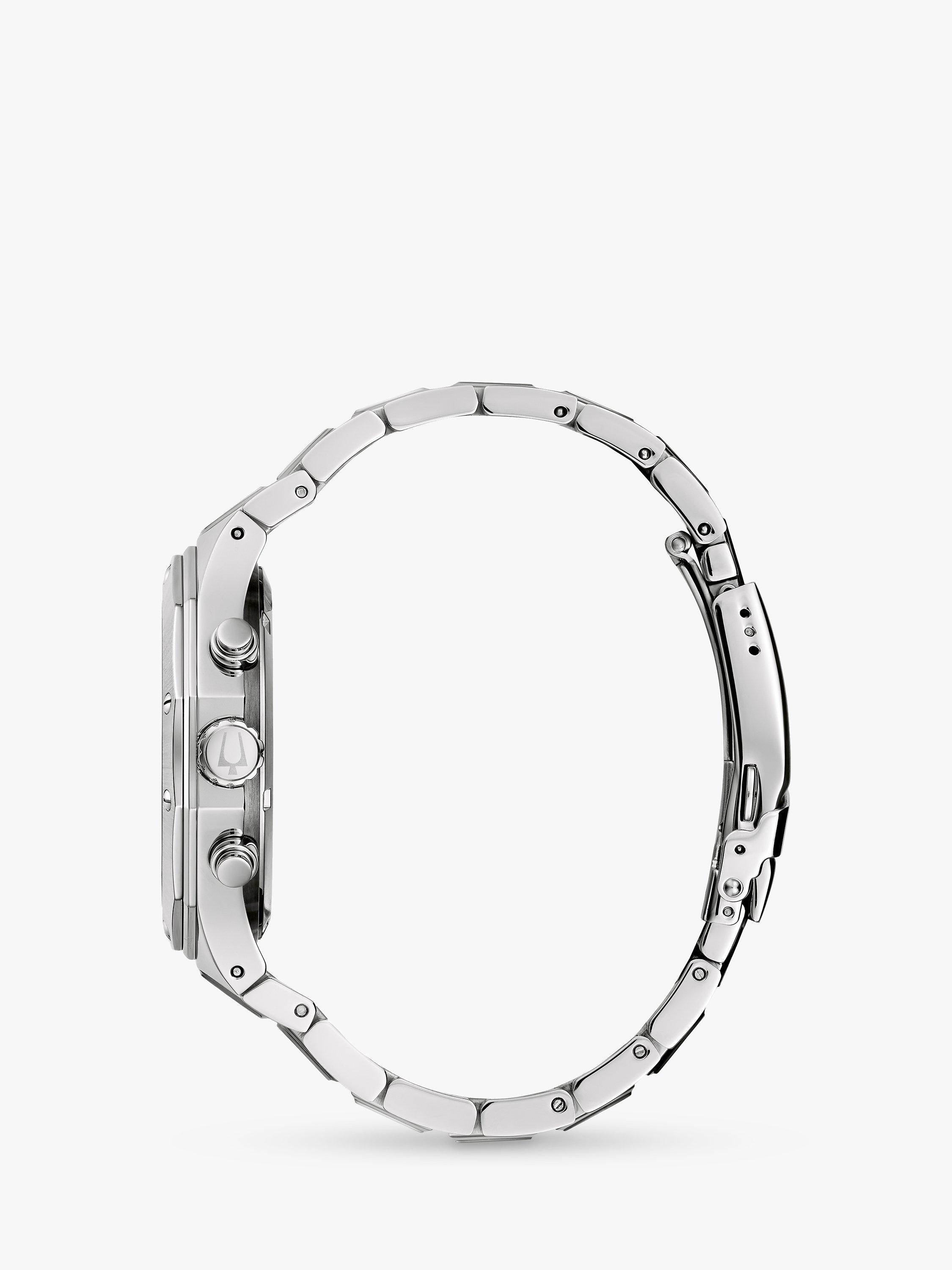 BulovaMen's Chronograph Geometric Bezel Bracelet Strap Watch, Silver