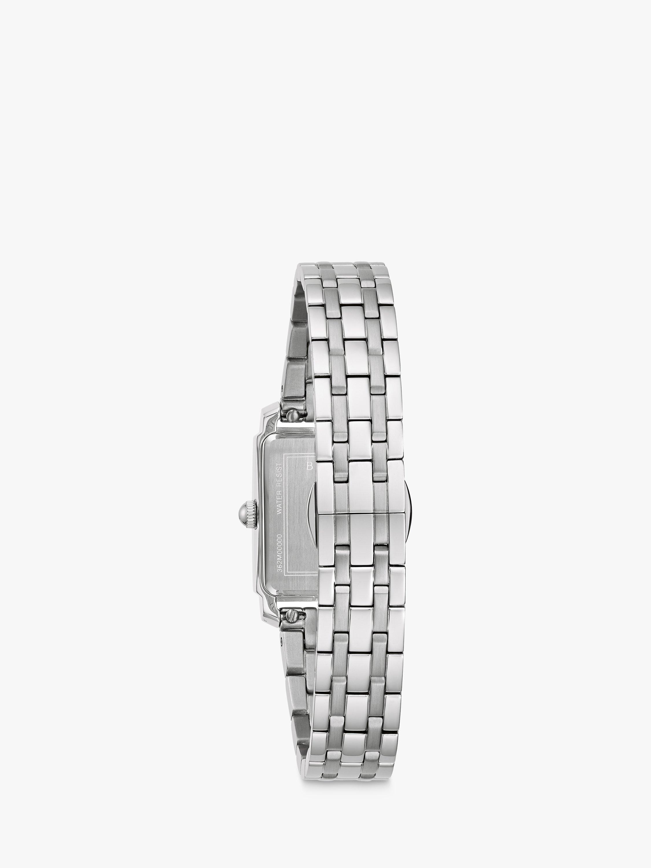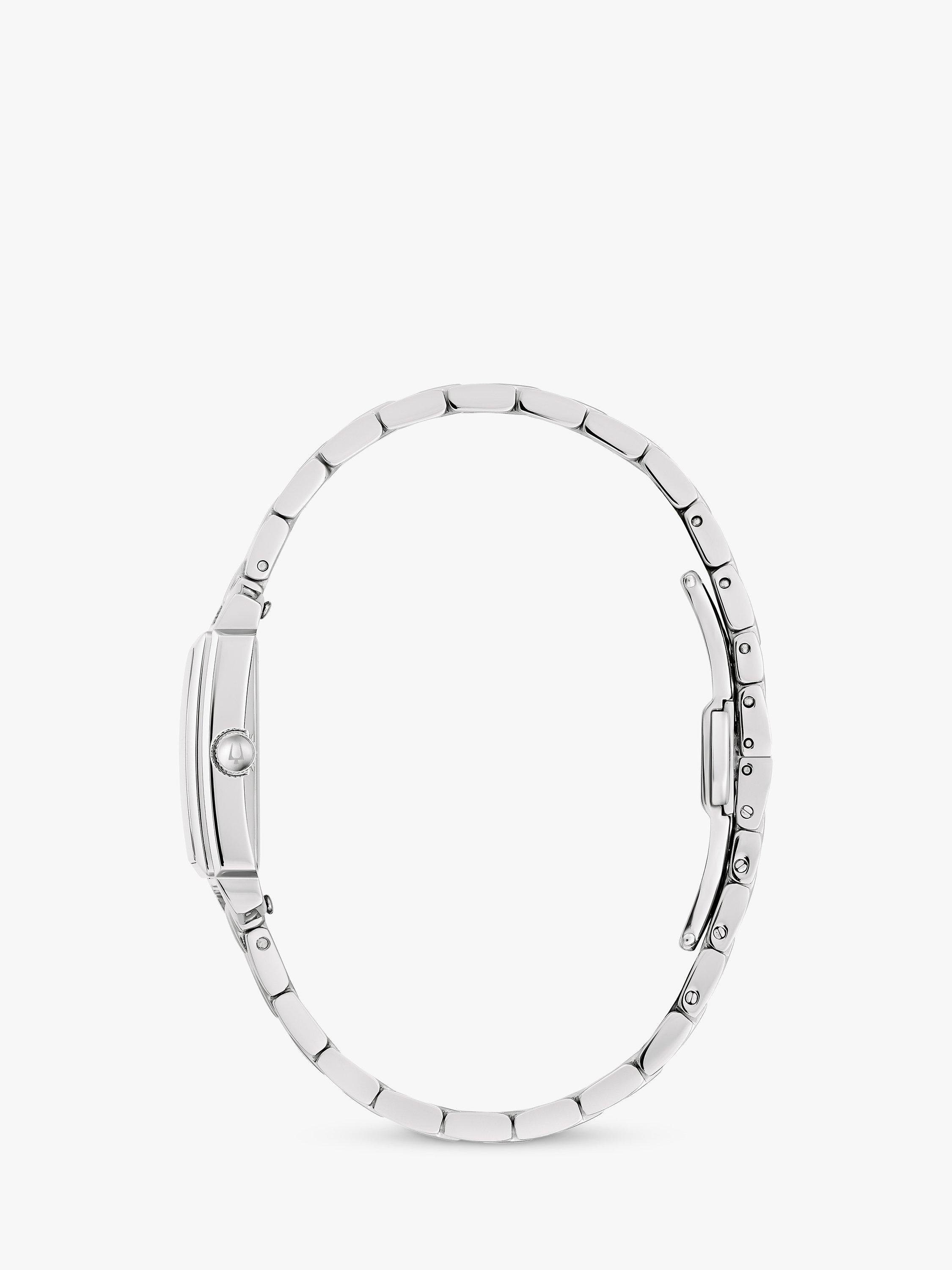 Dedicated to traditional style, this timepiece from Bulova is set in a rectangular shape and is complete with dazzling diamonds.
