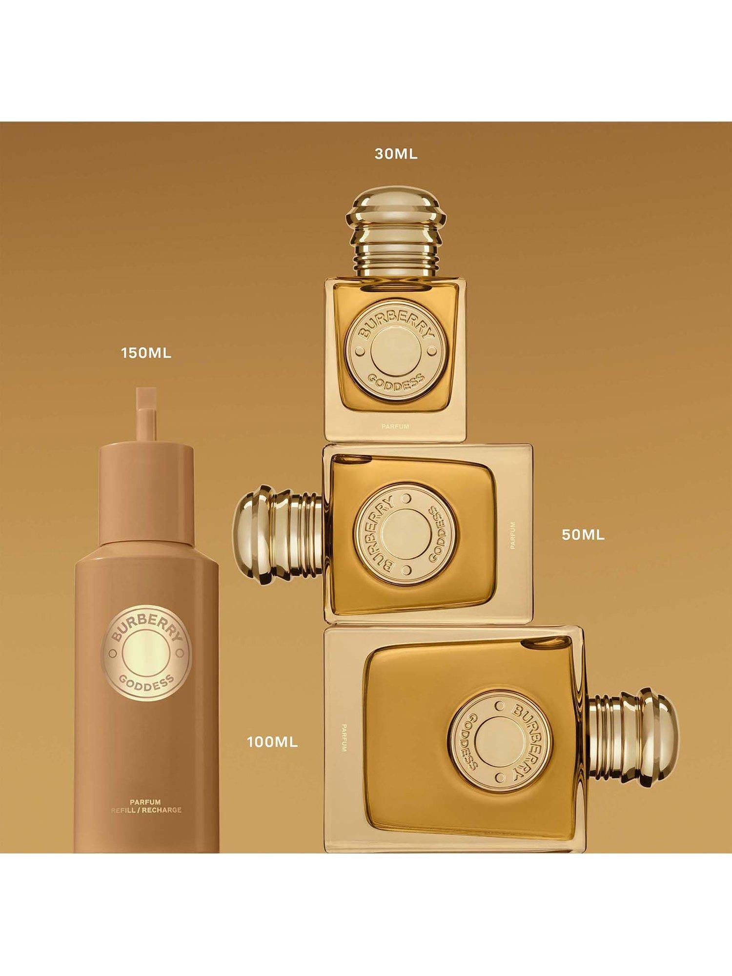 Inspired by the shades of a radiant sunset, Burberry Goddess Parfum is housed in a refillable bronzed square bottle. Its elegant light brown packaging with a gold label is inspired by Burberry’s signature gabardine fabric. The refill for this Burberry perfume is sold separately.