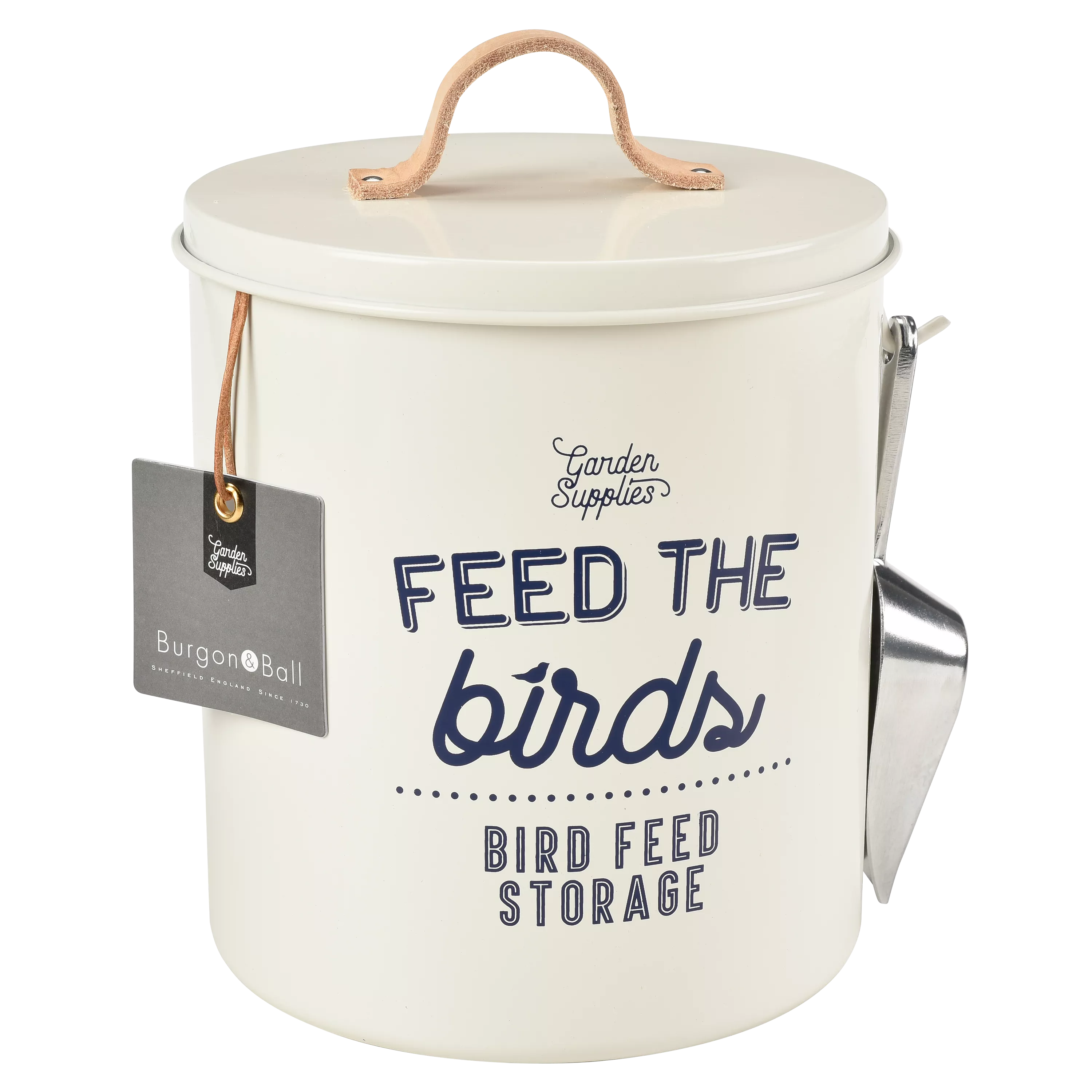 A stylish way to keep bird seed, this beautiful enamel tin from the Burgon & Ball garden range features a real leather handle for easy carrying.