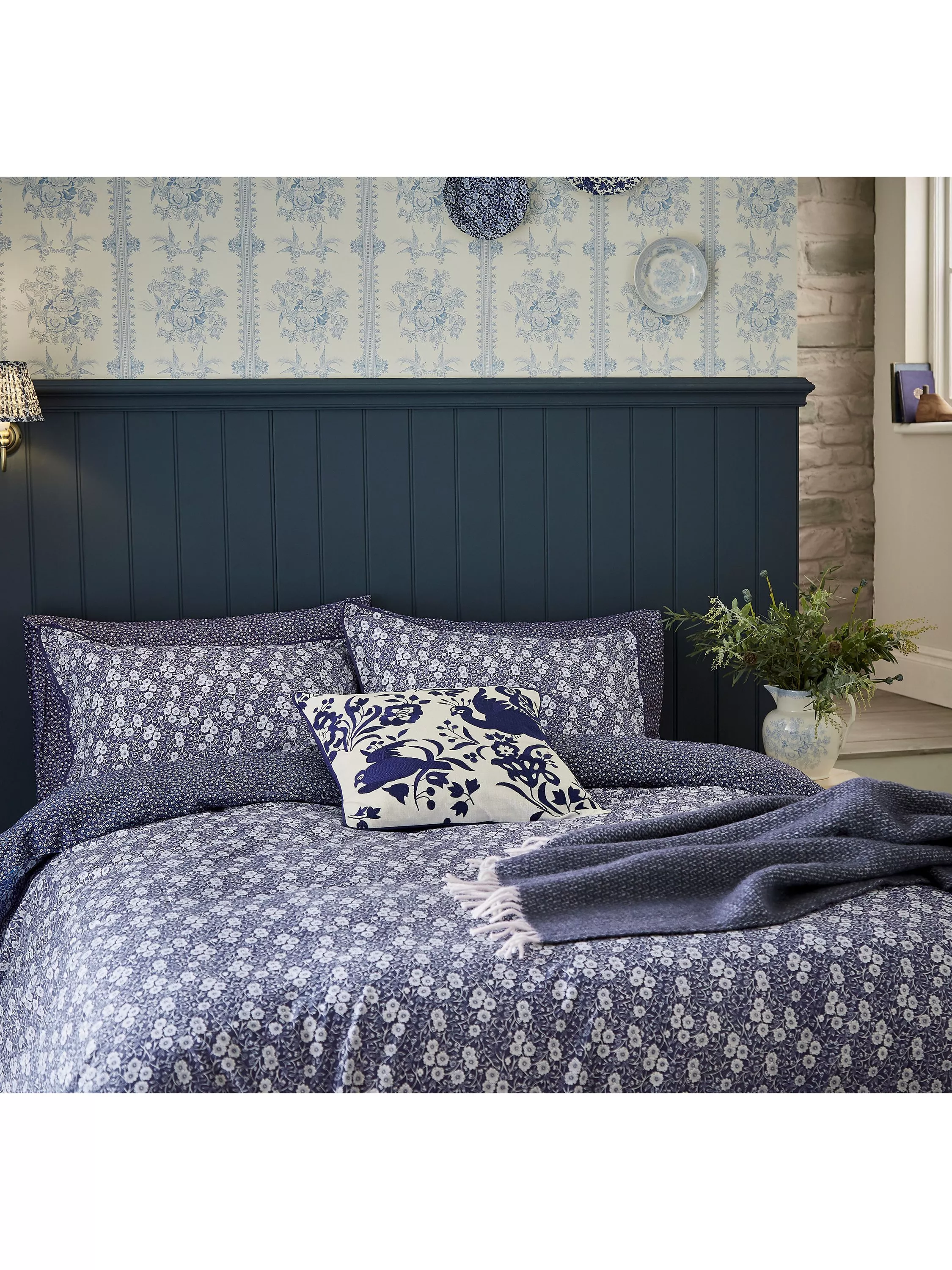Calico features an intricate design of trailing flowers and foliage, digitally printed on 220 thread count cotton percale. Inspired by a 19th-century indigo fabric, Calico was added to the Burleigh catalogue in 1968 and the bedding faithfully captures the beauty of the original artwork. There's a different print on the reverse.