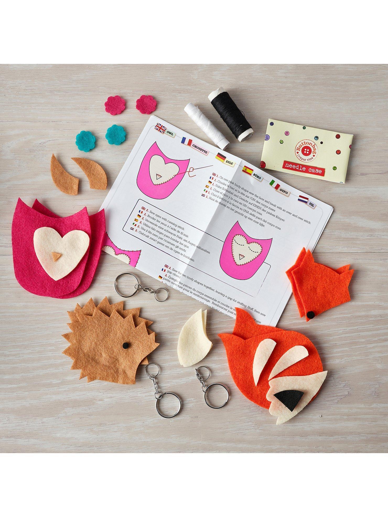 Suitable for complete beginners, this kit contains everything you'll need to make three felt key rings or bag charms including pre-cut felt pieces, needle, pins, sewing thread, embroidery thread, key rings and toy stuffing plus step-by-step instructions to guide you through the process.