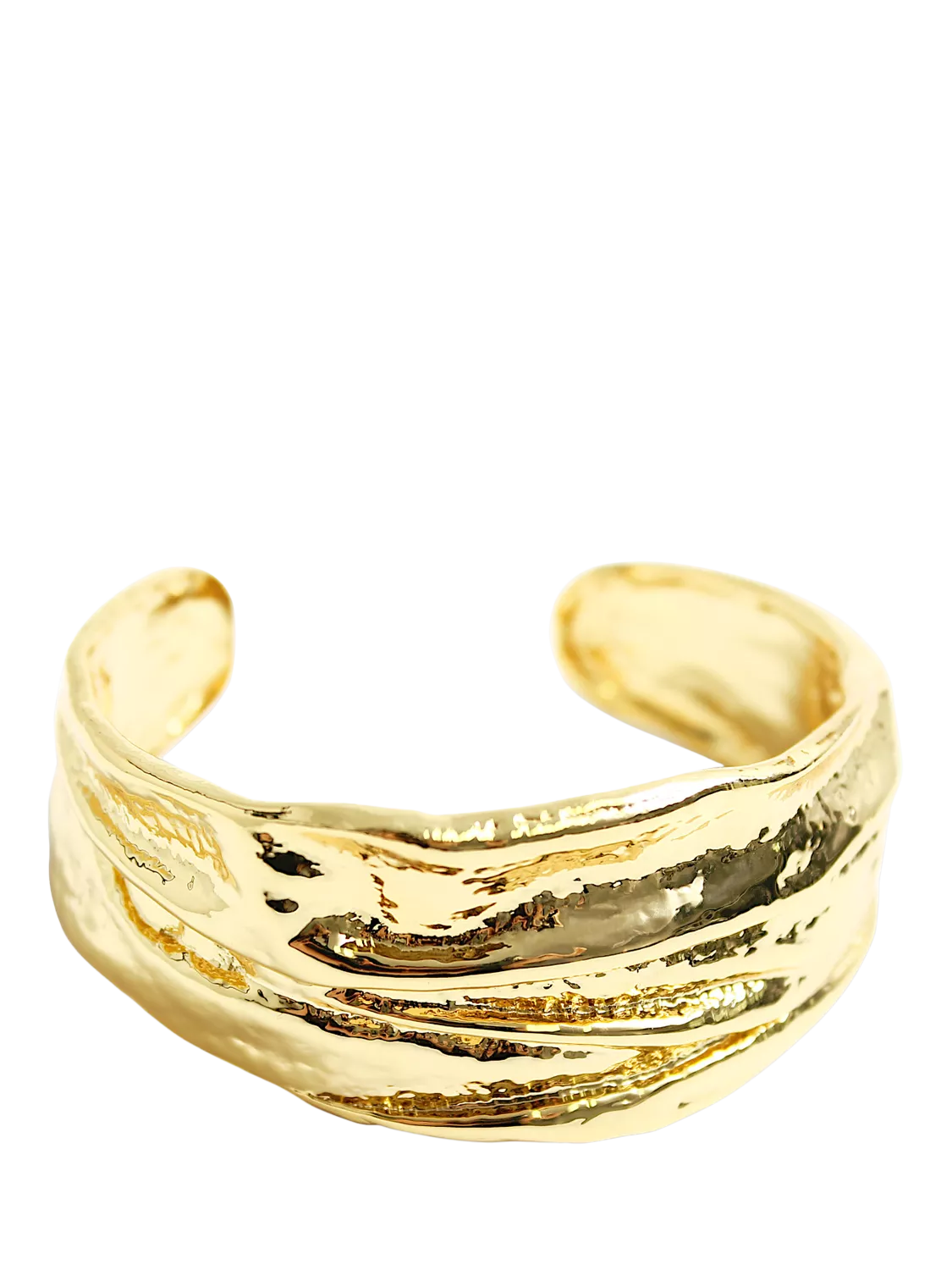 The stunning 18k gold plated Carmen bangle was hand crafted by moulding fabric and casting directly into metal.