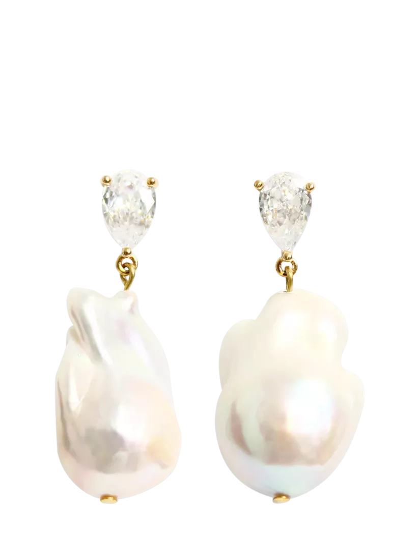 The Mimi earrings will add some feminine energy to your look. Made with pear-shaped crystal studs, and natural baroque pearls.