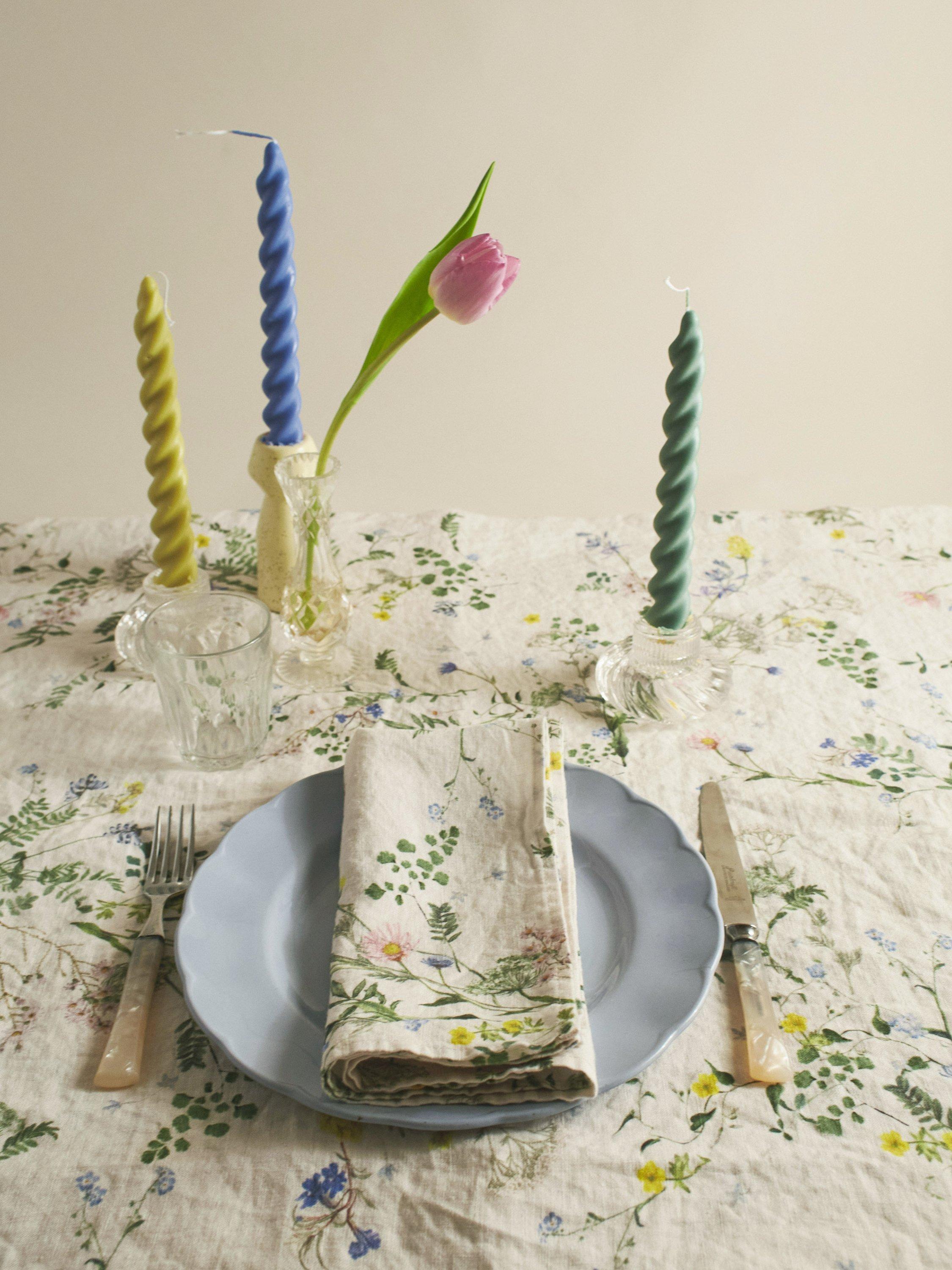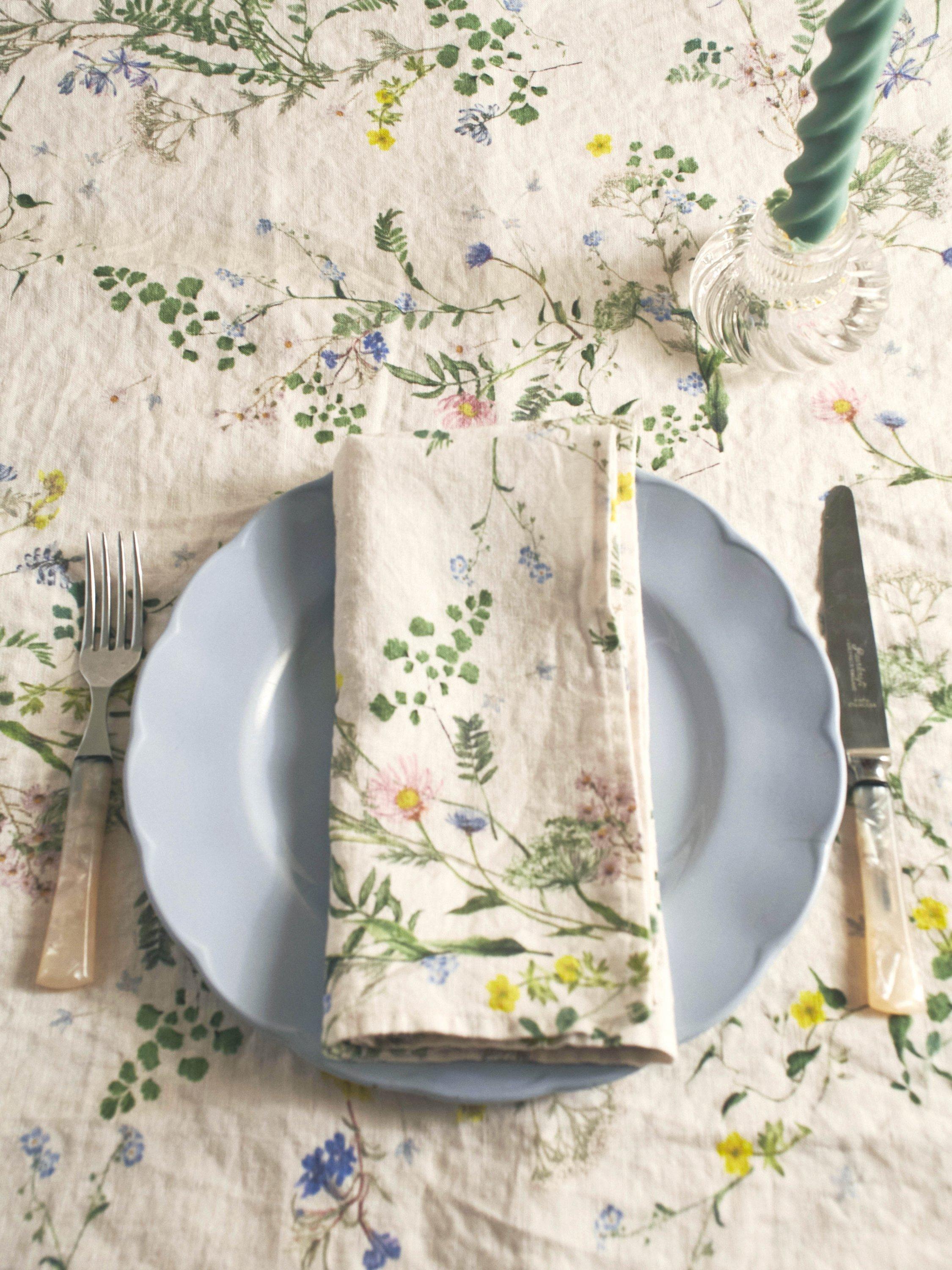 The Posy tablecloth is inspired by countryside hedgerows and meadows and spring colours of blues, yellows, greens and pops of pink to refresh your table all year round. Printed onto 100% European washed linen. Team it with the matching napkins for a coordinated look.