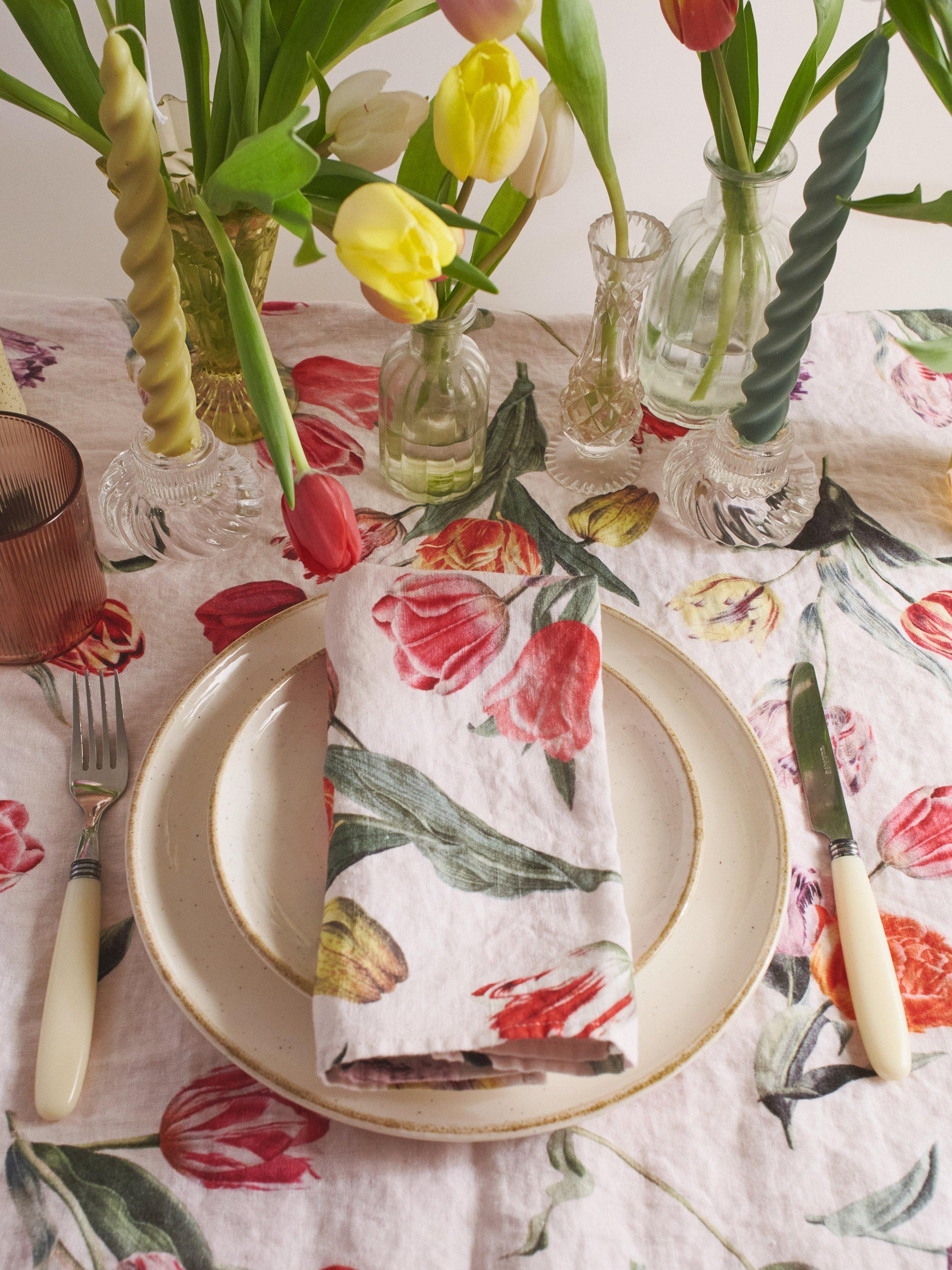 Inspired by the burst of colours tulips bring to our gardens in springtime, this napkin is a true celebration of a favourite bloom. Printed onto 100% European washed linen. Team it with the matching tablecloth for a coordinated look.