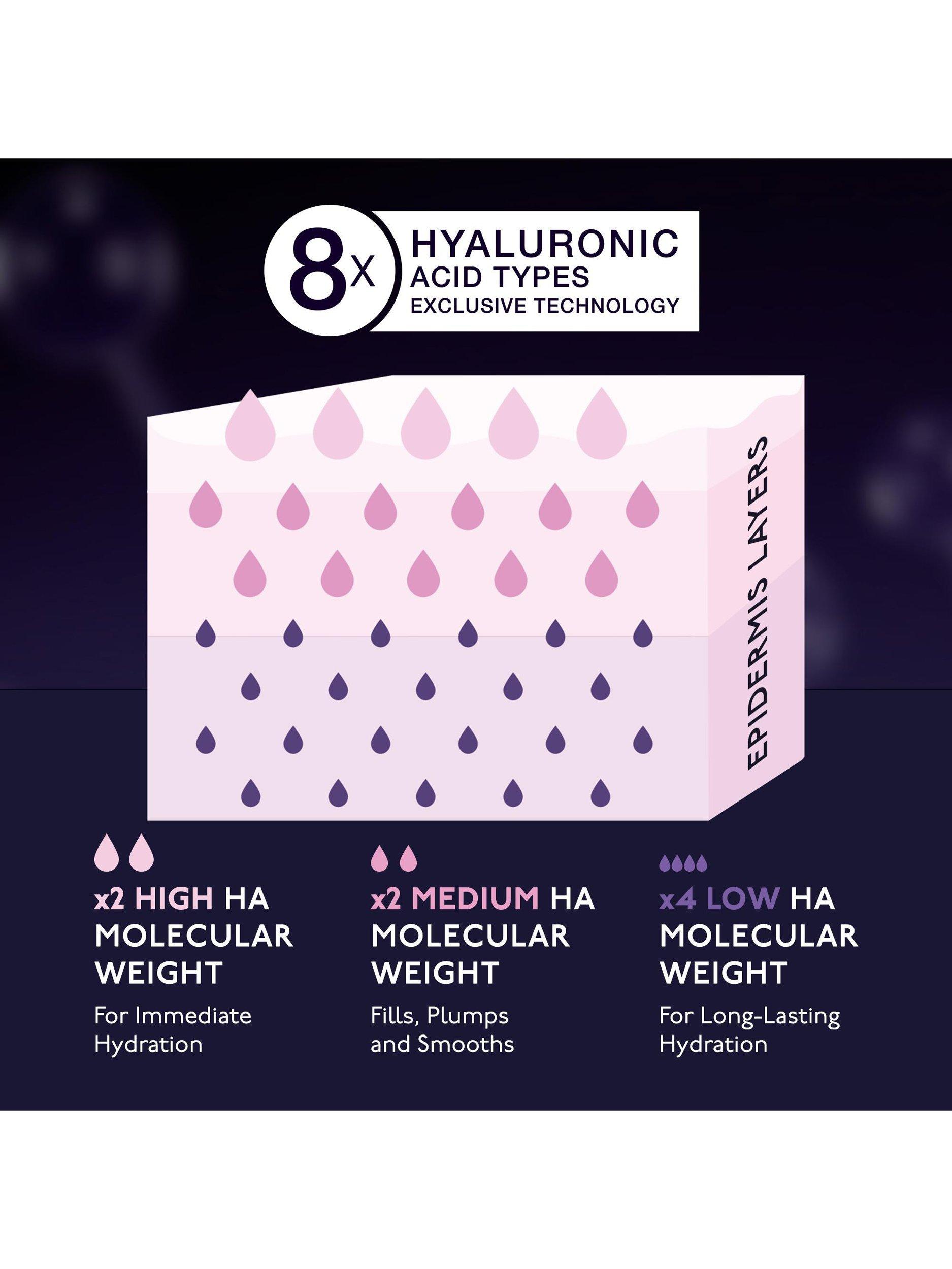 - The low-molecular-weight Hyaluronic Acid ensures a deeper, long-lasting hydration of the epidermis