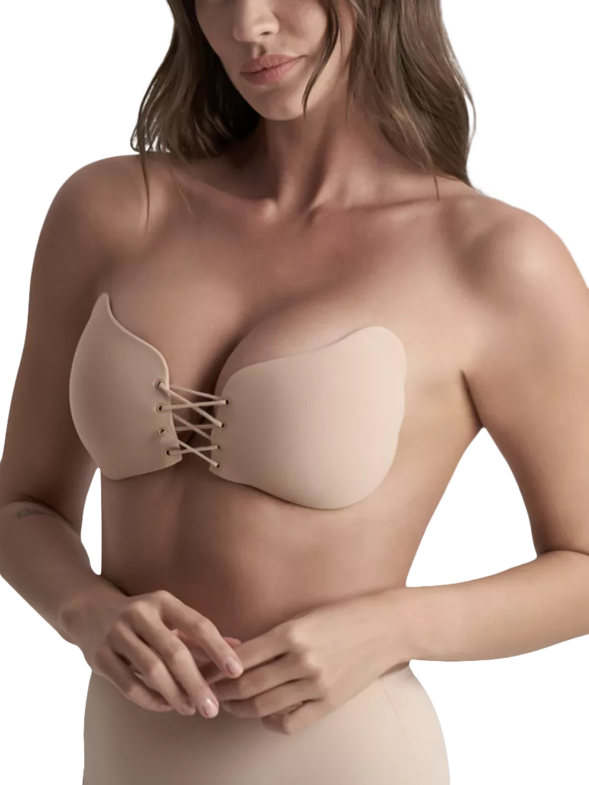Elevate your look with the Lace-it Bra, a luxurious stick-on bra that combines practicality with elegance. With adjustable drawstrings and unique adhesive technology, it offers customizable support while providing an alluring cleavage boost.