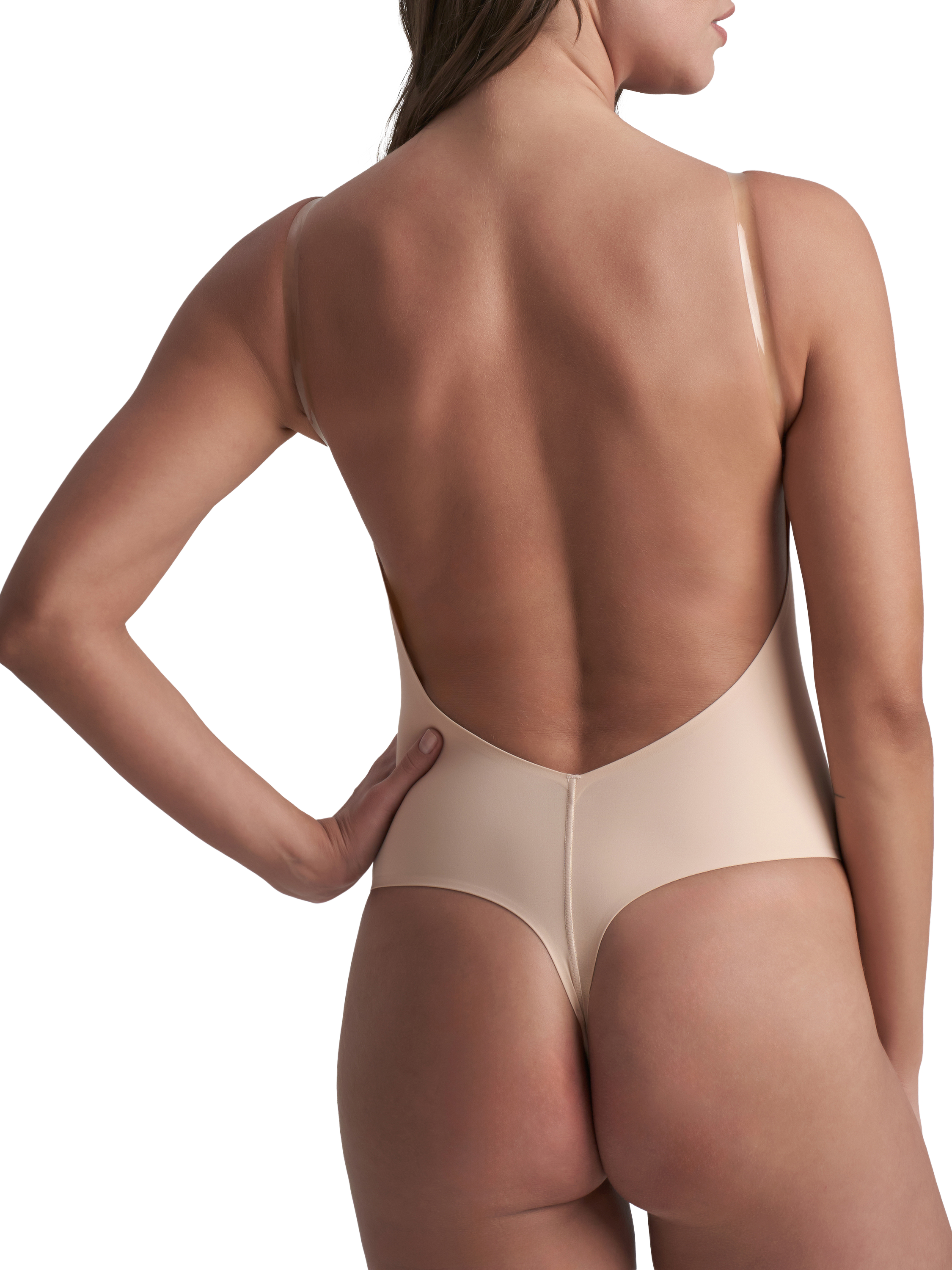 This bodysuit combines the perfect backless solution with the perfect plunge. It boasts a transparent small strap between the cups, moulded push-up cups with wired support and adjustable shoulder straps.