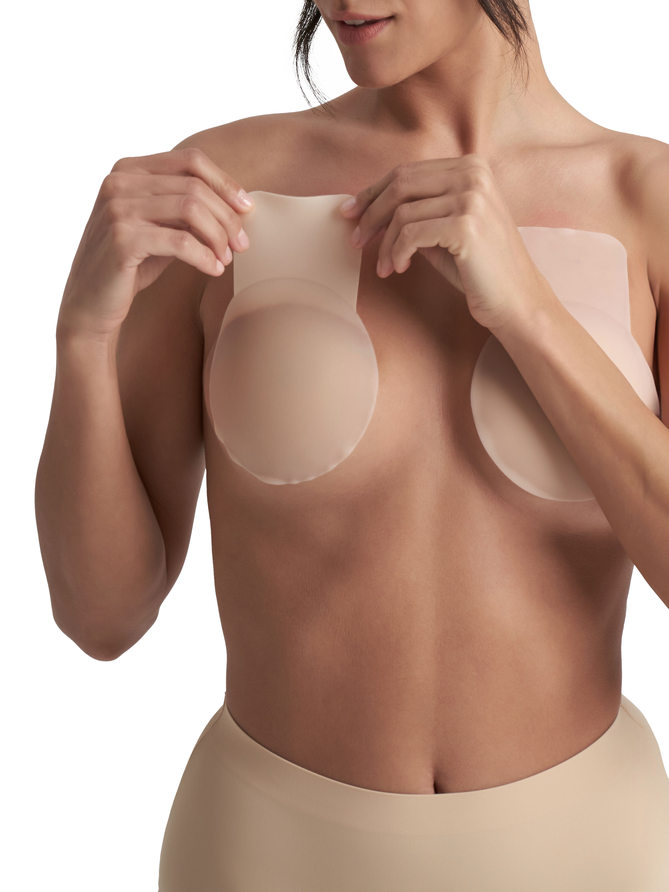 Dermatologically approved and hypoallergenic, these nipple covers lift and shape the breast for bra-like support without the bra. They are made from 100% silicone and have a matt appearance. Reusable up to 50 times.