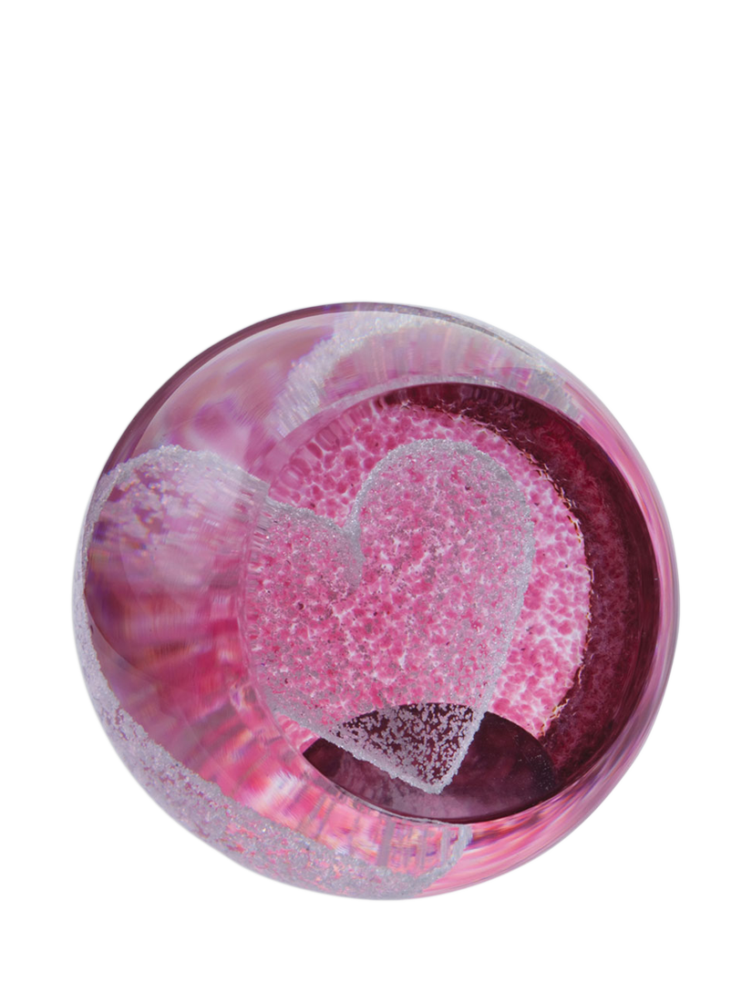 Handmade in Scotland by expert glassmakers, this paperweight features a petite heart motif suspended within a smooth ruby-coloured ball.
