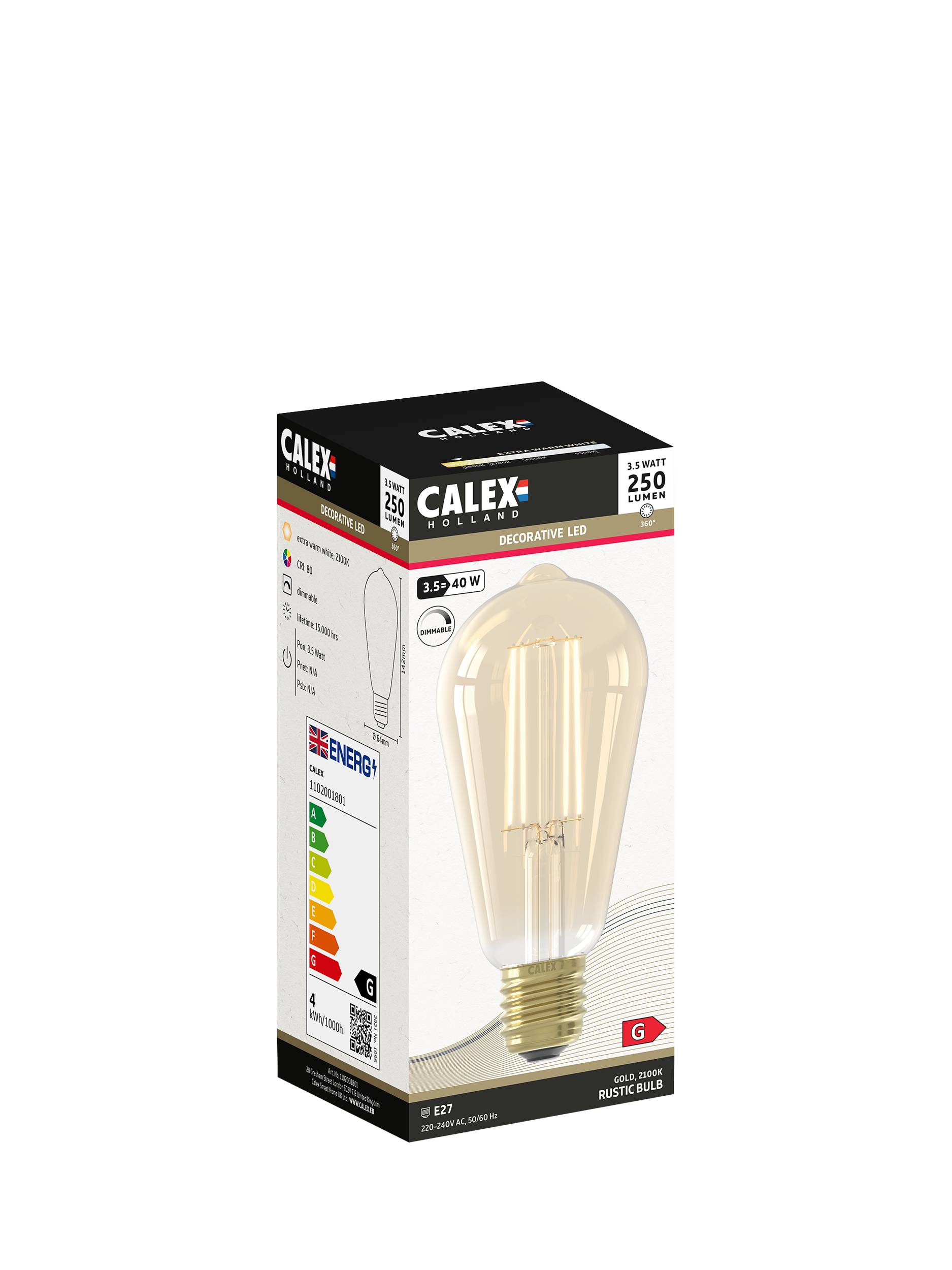 Calex3.5W Decorative Filament LED Dimmable E27 Rustic Bulb, Gold