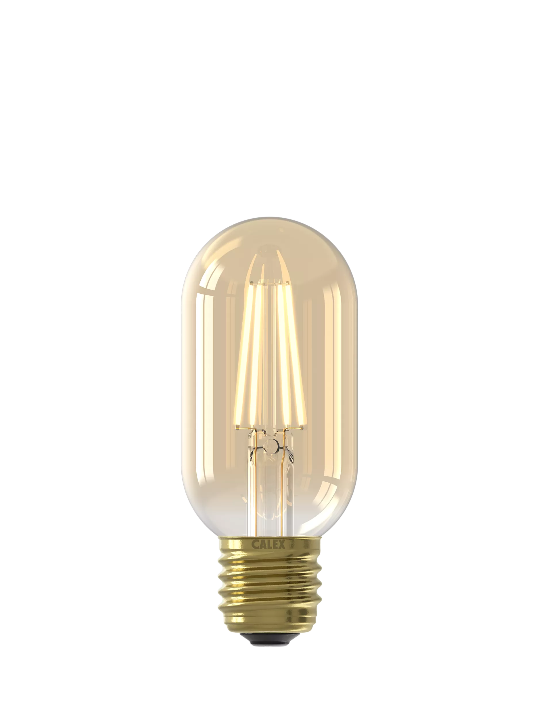 From the Goldline series of Calex light bulbs with exposed filaments. This dimmable tubular LED bulb with an Edison screw fitting gives a warm glow with a decorative design and gold finish that's meant to be seen.