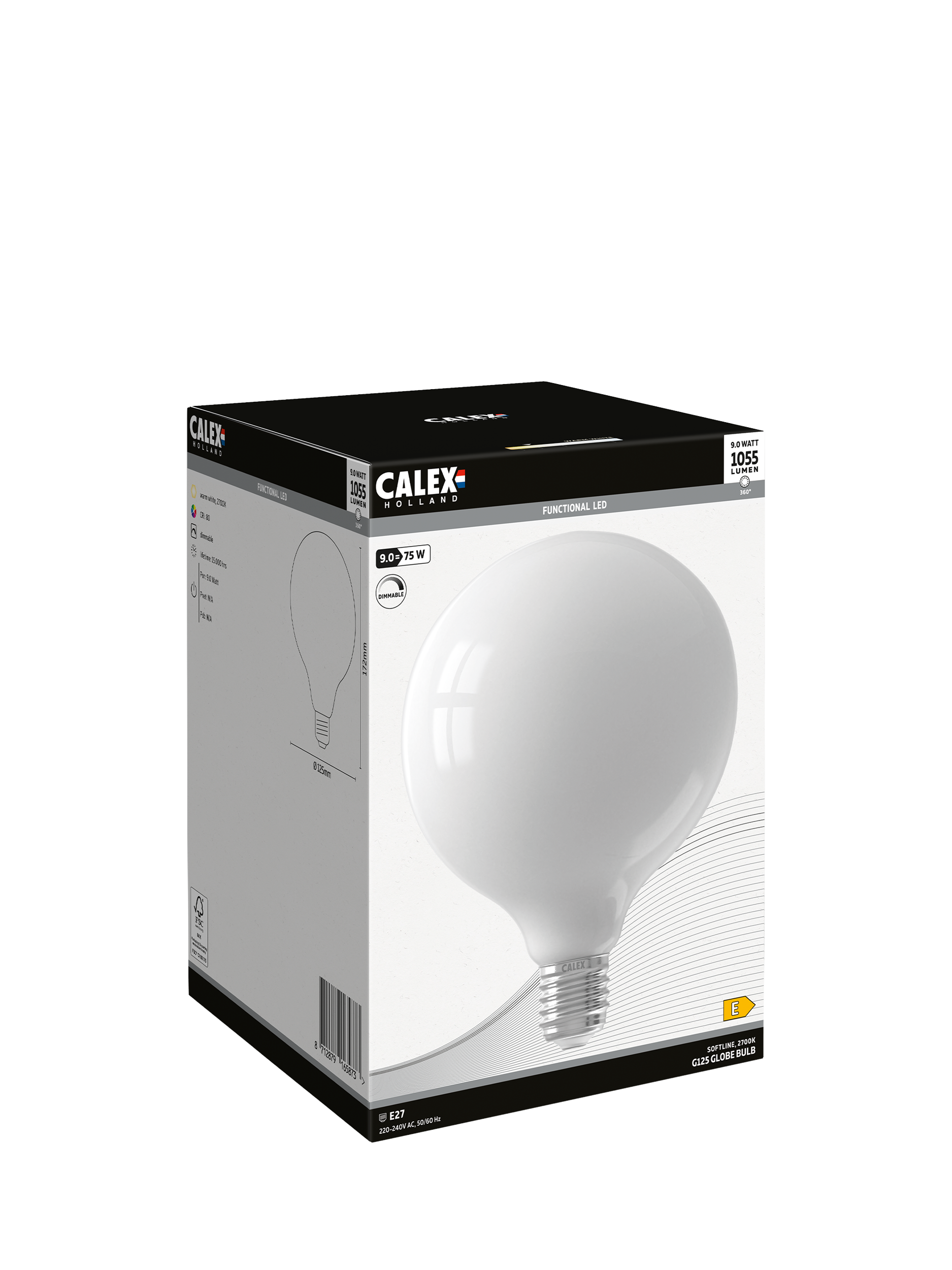 Part of the Softline series from Calex, full-glass LED solutions that replace all popular incandescent/halogen lightbulbs. The same warm glow, an identical warm feeling and completely dimmable. This large globe LED lamp with an Edison screw fitting has a white finish.