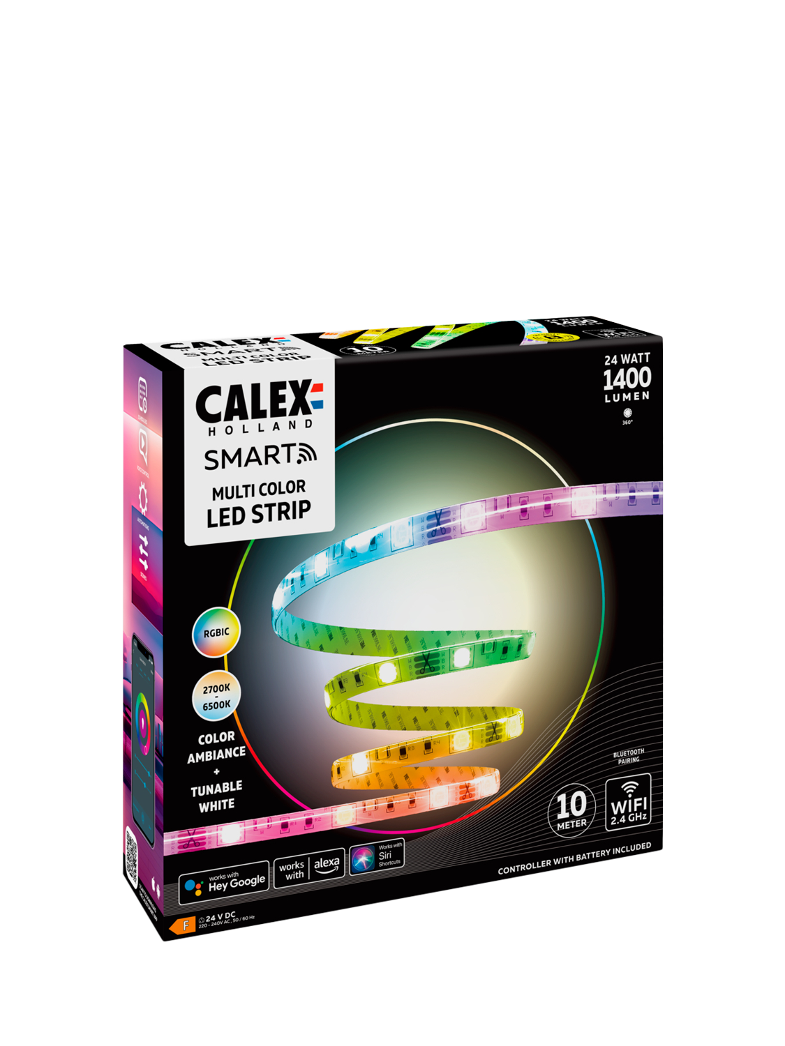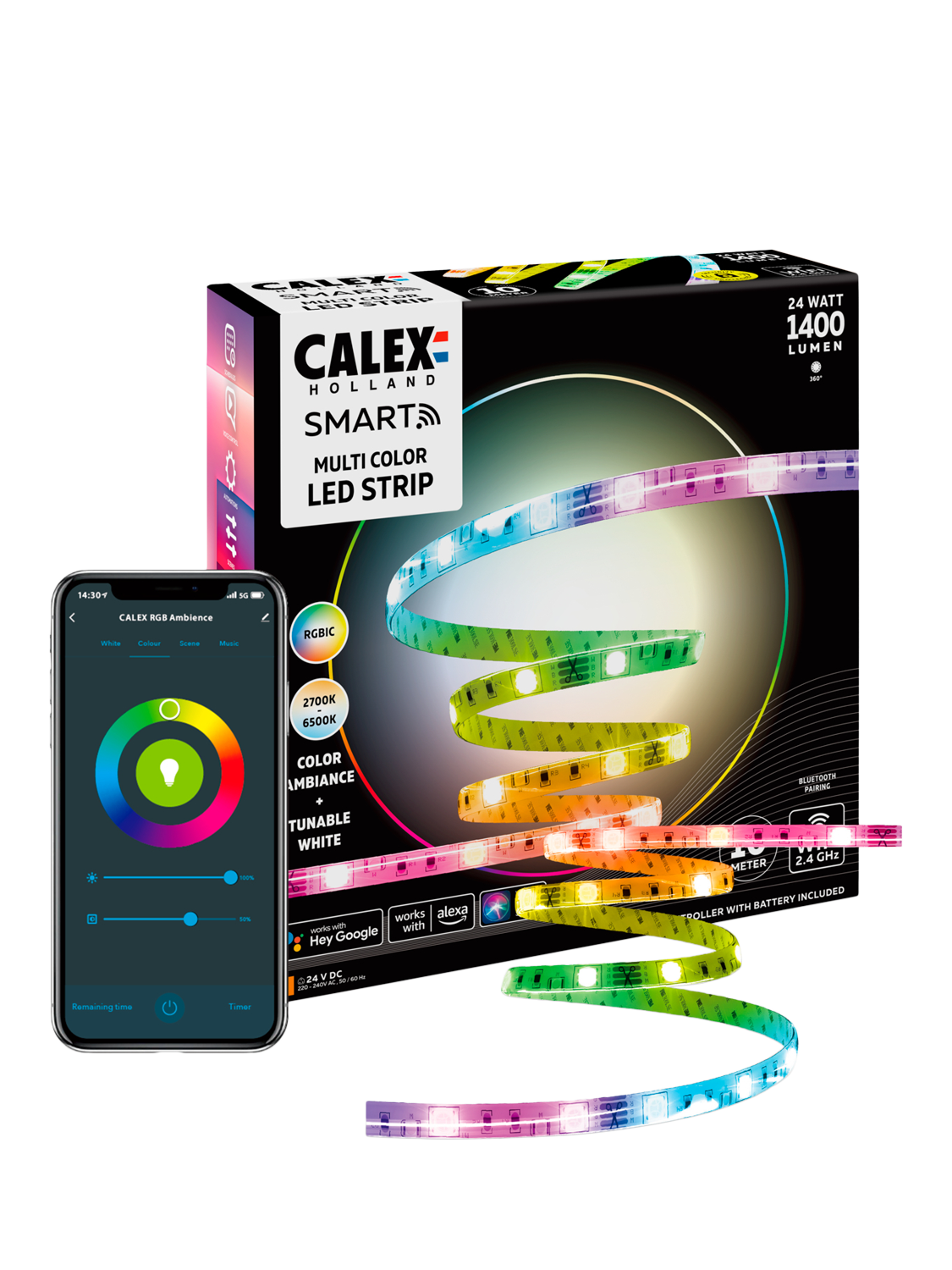 Controlled via the Calex App on your smartphone or device, you can effortlessly manage this LED strip, turning it on and off, dimming it, and changing its colours, all through your home's WiFi connection (2.4GHz).